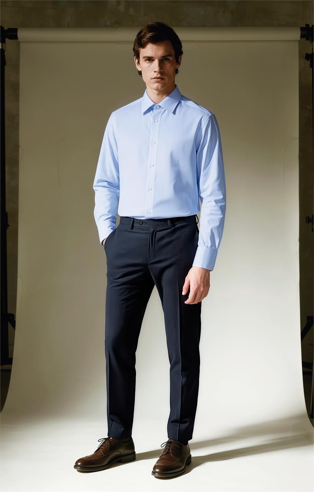 Pantalón caballero con lana con prolonga en cintura, bolsillo delantero tipo francés, relojera en delantero derecho y bolsillo trasero.