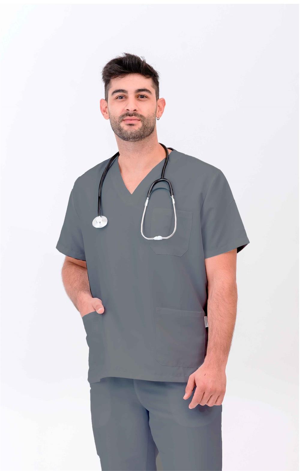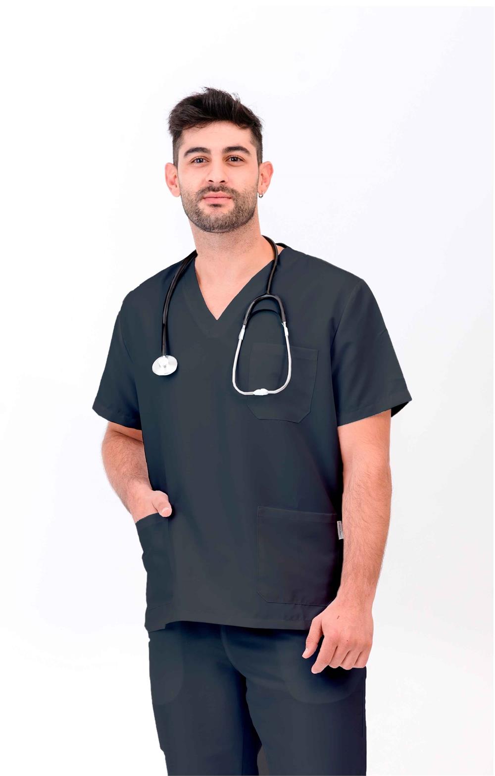 114007C - Casaca sanitaria cuello pico cerrada en microfibra