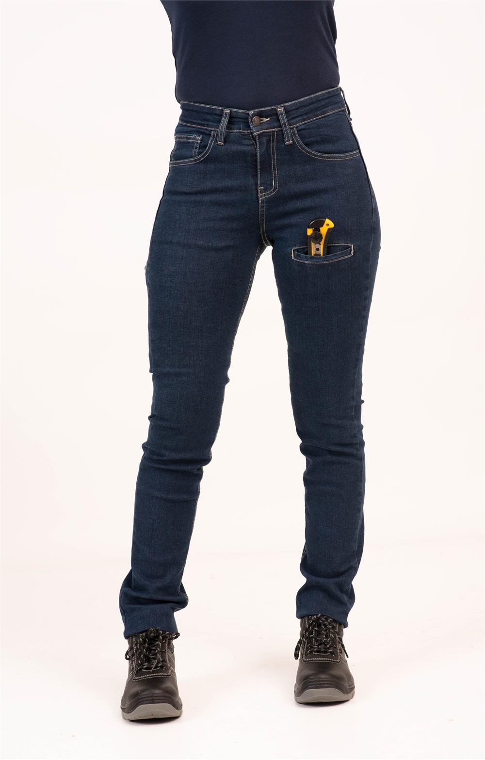 Vaquero - Estilo 5 bolsillos - Bolsillo supletorio en muslo - Elástico - Lavado a la piedra - Cremallera YKK
