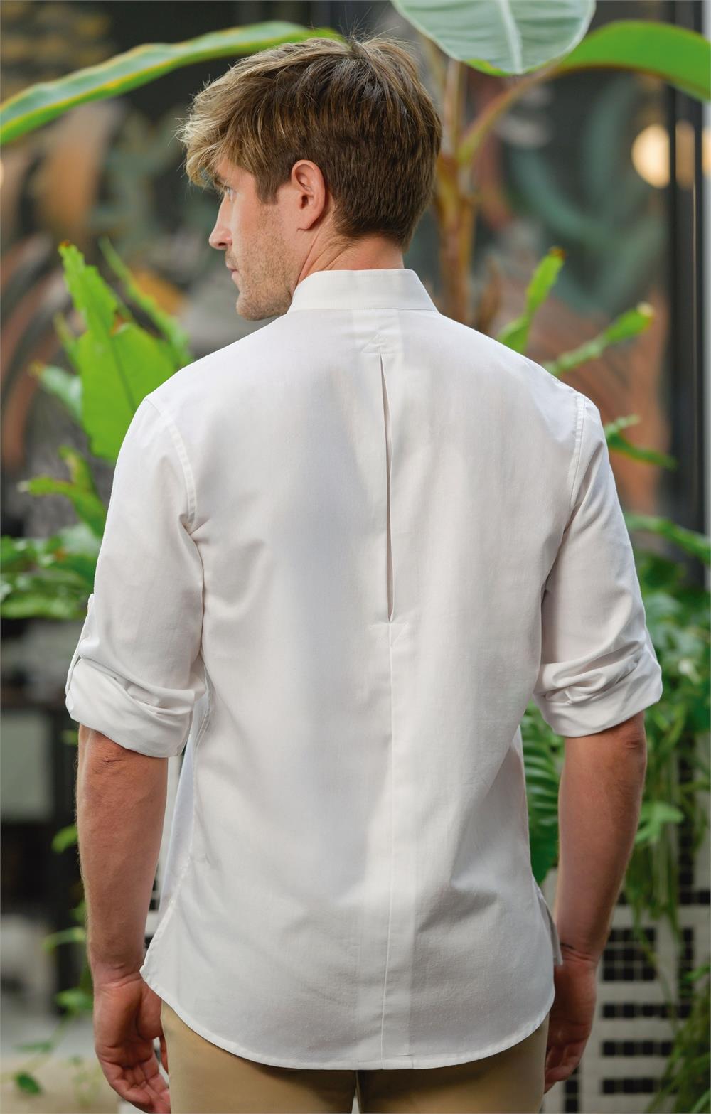-Camisa -Estilo lino -Fuelle en la espalda -Recogemangas -Cuello fantasia
