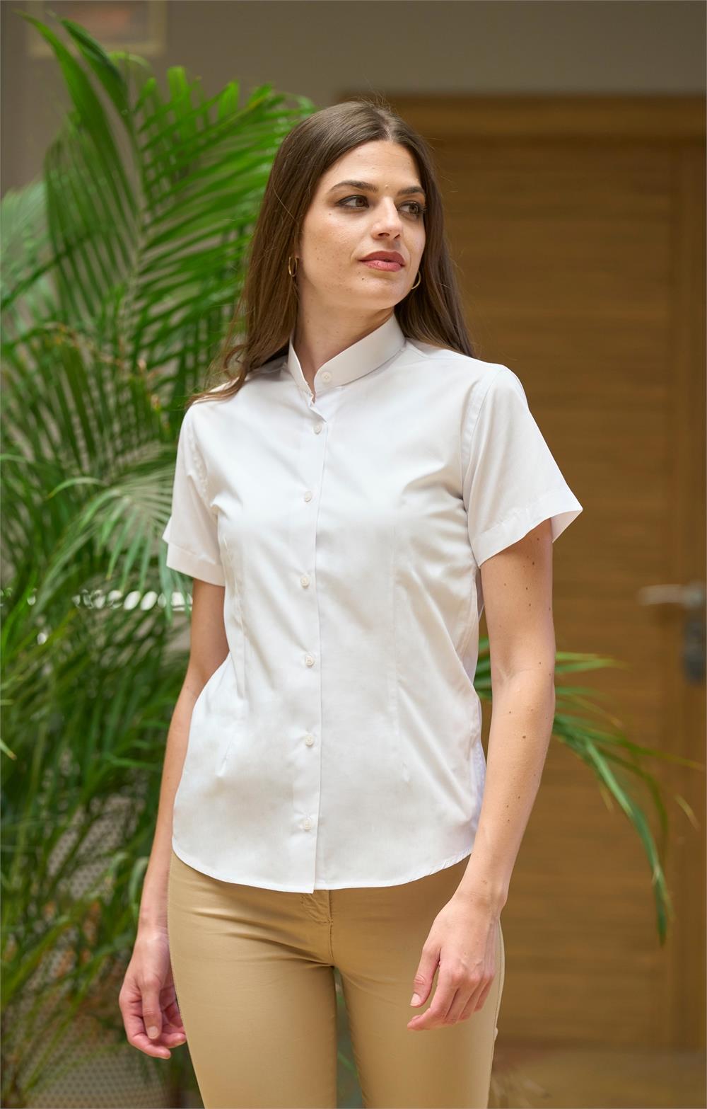 -Blusa señora -Cuello tirilla -Manga corta -Pinzas en espalda y delantero -Botón en puño