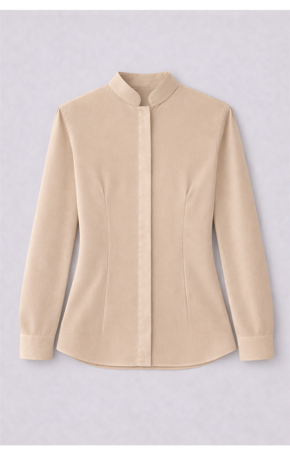 Camisa manga larga - Cuello mao - Botón en puño - Canesú en espalda - Botonadura oculta - Pinzas en espalda y delantero