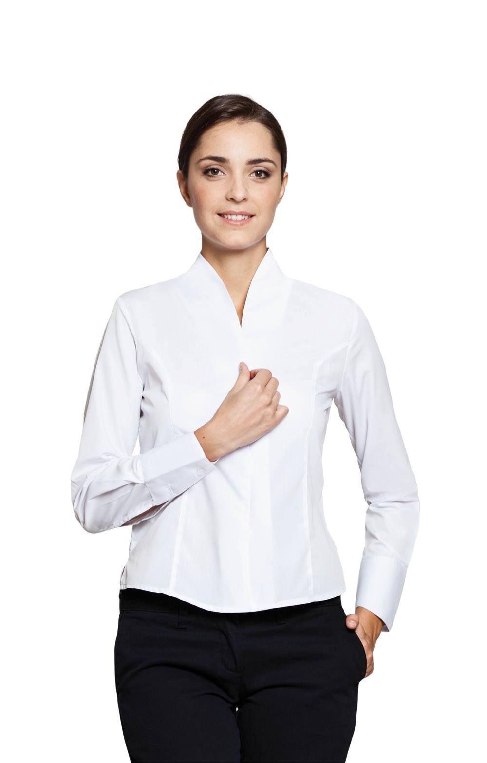 Camisa manga larga - Cuello chimenea - Dos pinzas delanteral - Botonadura interior, botones ocultos