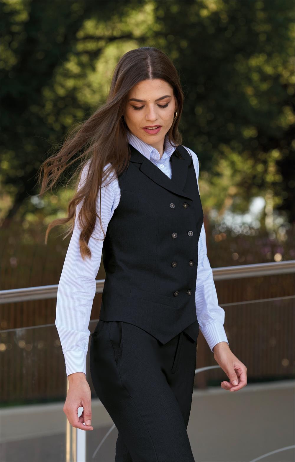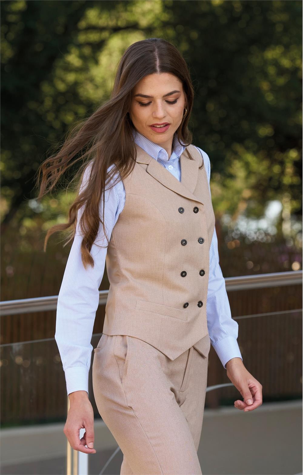 -Solapa recta -Forro en espalda -Doble fila de botones, botones funcionales y decorativos -Ajustador en espalda -Entallada -Elástica -Dos bolsillos