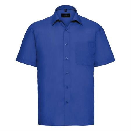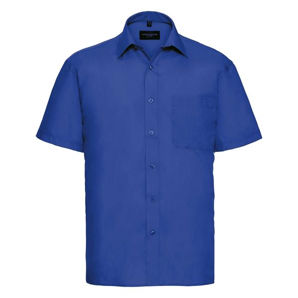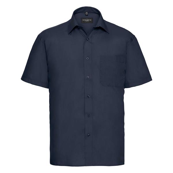 Camisa de hombre de popelín manga corta fácil cuidado de poliéster y algodón