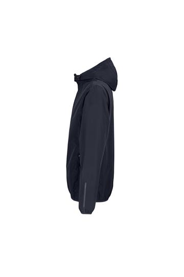 Cierre de cremallera frontal de nylon - Bolsillos laterales con cremallera - Costuras selladas - Cordón elástico en la capucha - Puños y dobladillo elásticos - Detalles reflectantes