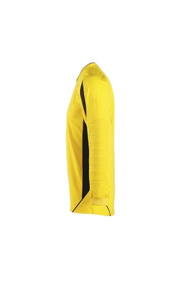 Mangas raglán. - Canesúes en malla sobre los lados y sobre las mangas - Mangas largas con bordes cosidos a los niveles de las muñecas. - Acolchado en los codos para absorción de golpes - Parte inferior trasera circular