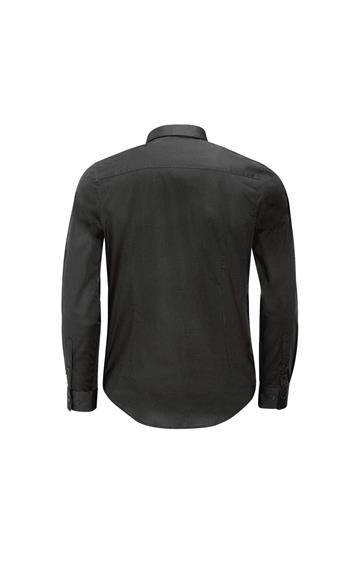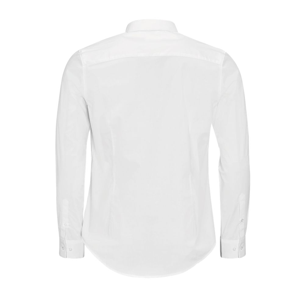 Corte ajustado - Mangas largas - Cuello clásico moderno - Puños con 2 botones y abertura con tapeta en punta - Tapeta de 8 botones tono sobre tono - 2 pinzas en la parte trasera