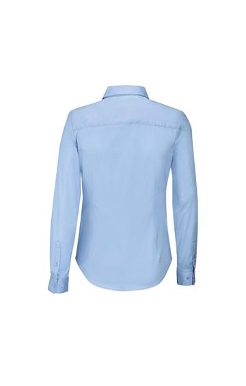 Corte ceñido - Mangas largas - Cuello clásico - Puños con 1 botón y abertura con tapeta en punta - Tapeta de 8 botones tono sobre tono - Pinzas en la parte delantera y trasera