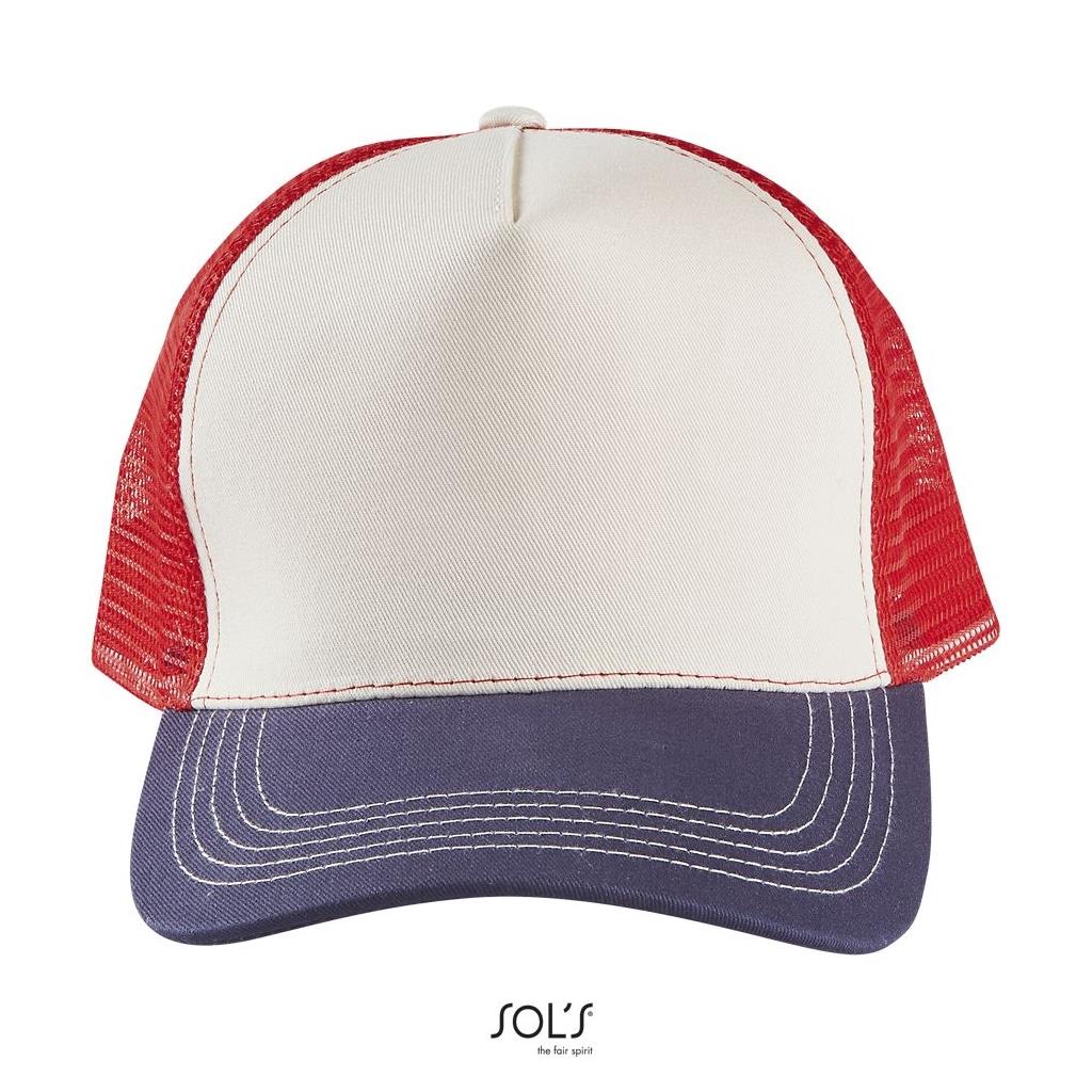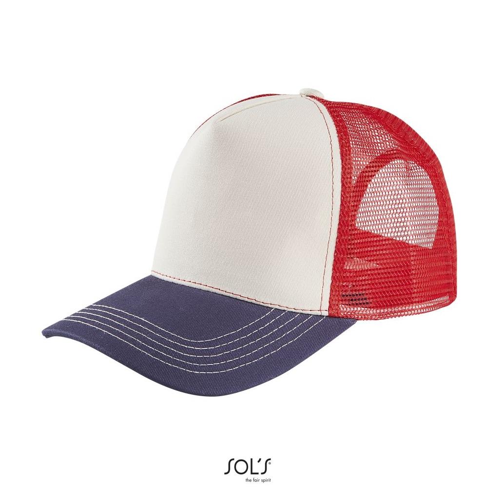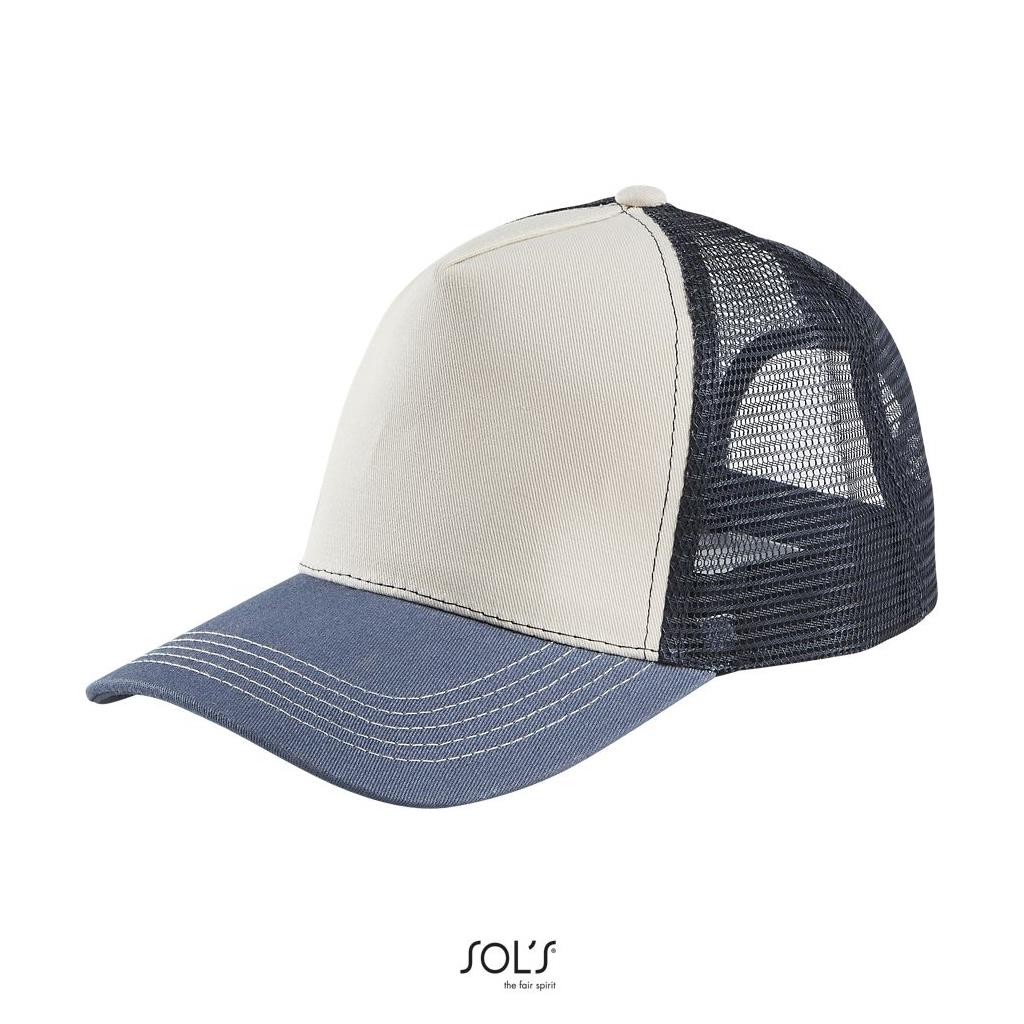 Modelo de 5 paneles - Cierre ajustable de plástico - Disponible en versión lisa, bicolor (malla y sarga en contraste) o multicolor (malla, visera y panel frontal en contraste)