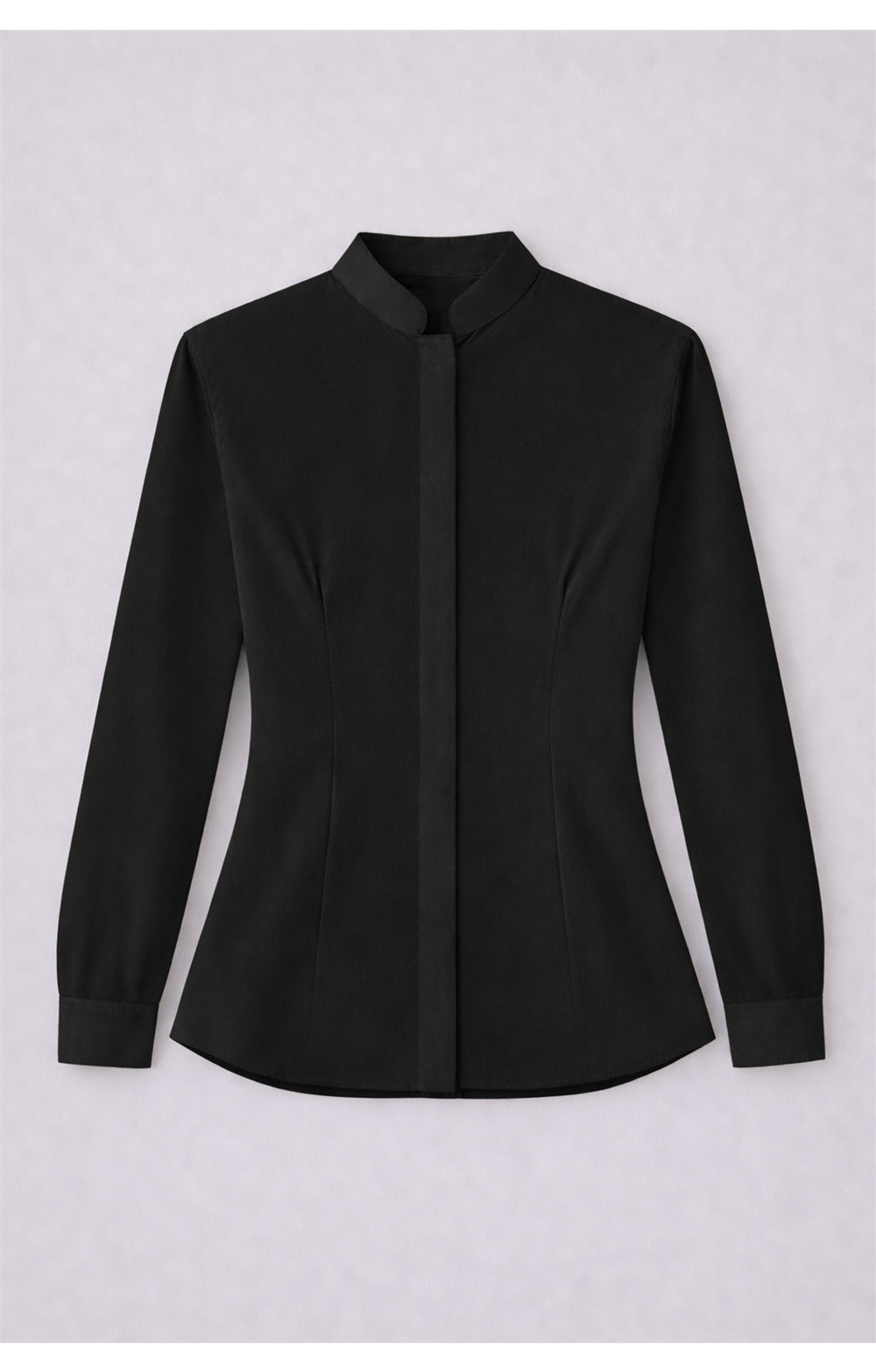 Camisa manga larga - Cuello mao - Botón en puño - Canesú en espalda - Botonadura oculta - Pinzas en espalda y delantero