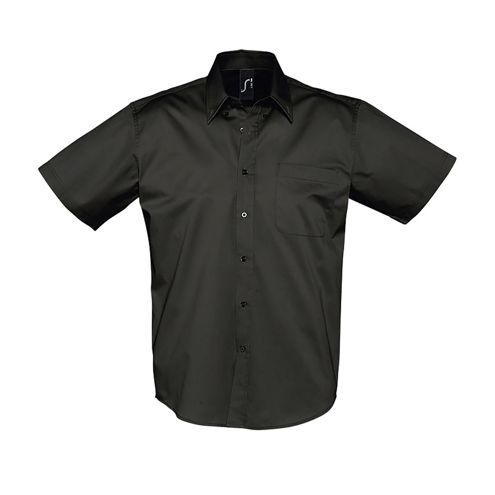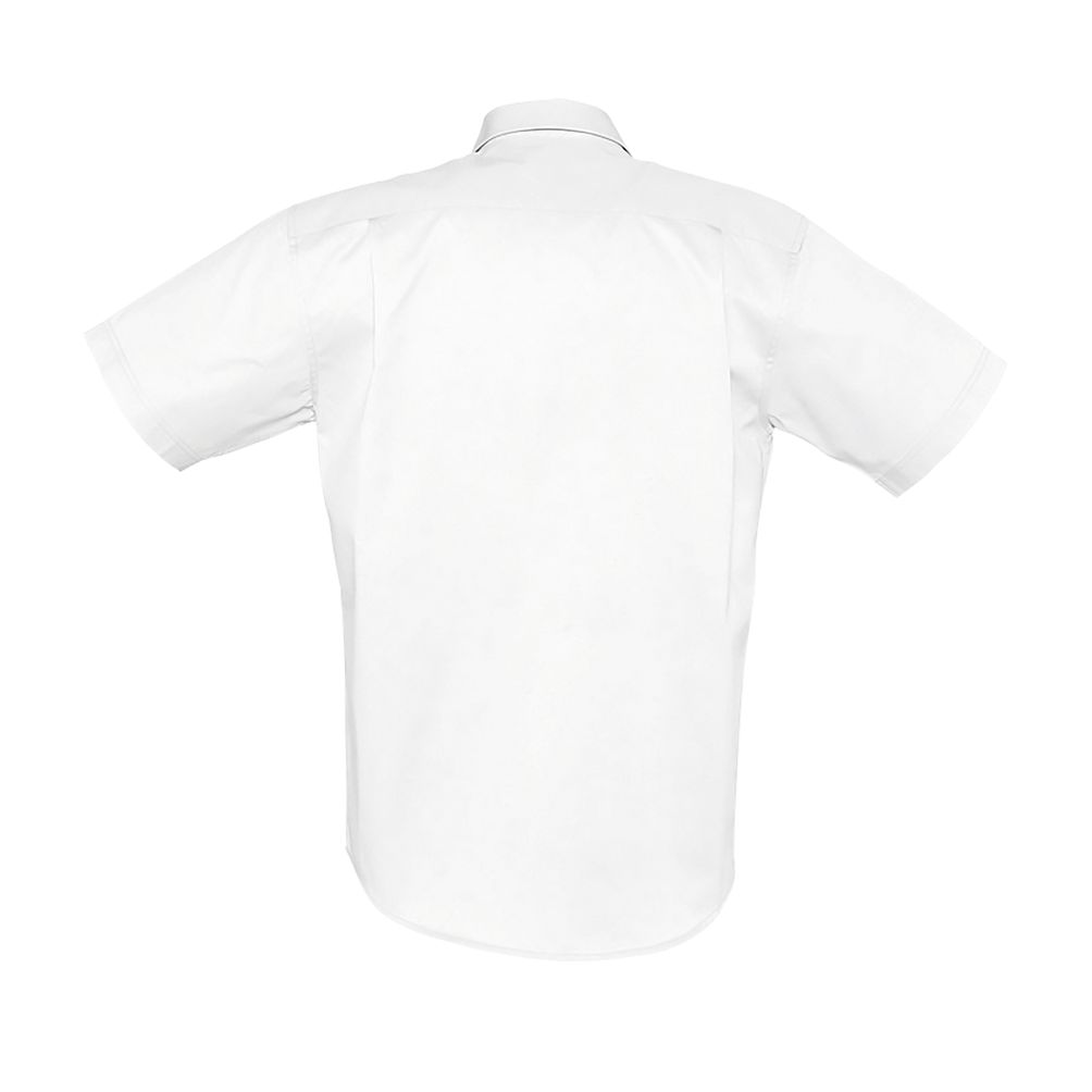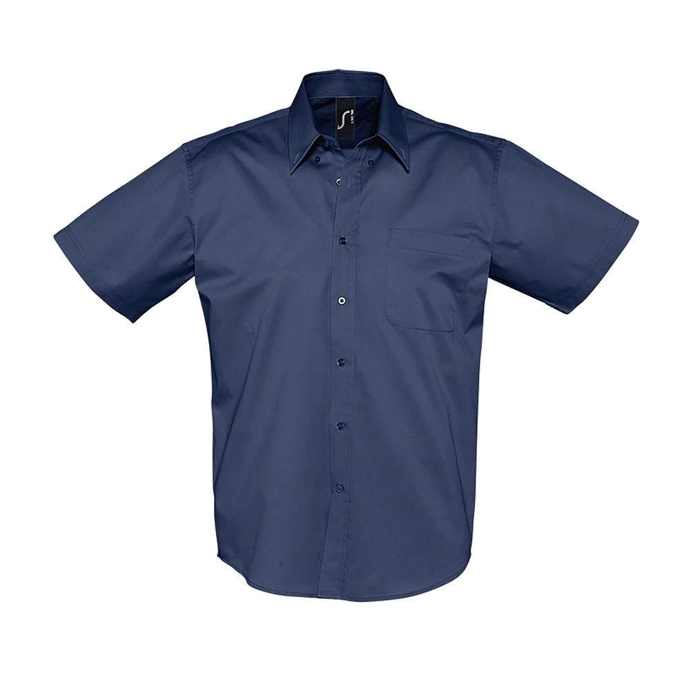 Corte recto - Mangas cortas - Cuello clásico con 2 botones - Tapeta de 7 botones tono sobre tono - Bolsillo en el pecho izquierdo - 2 botones de repuesto