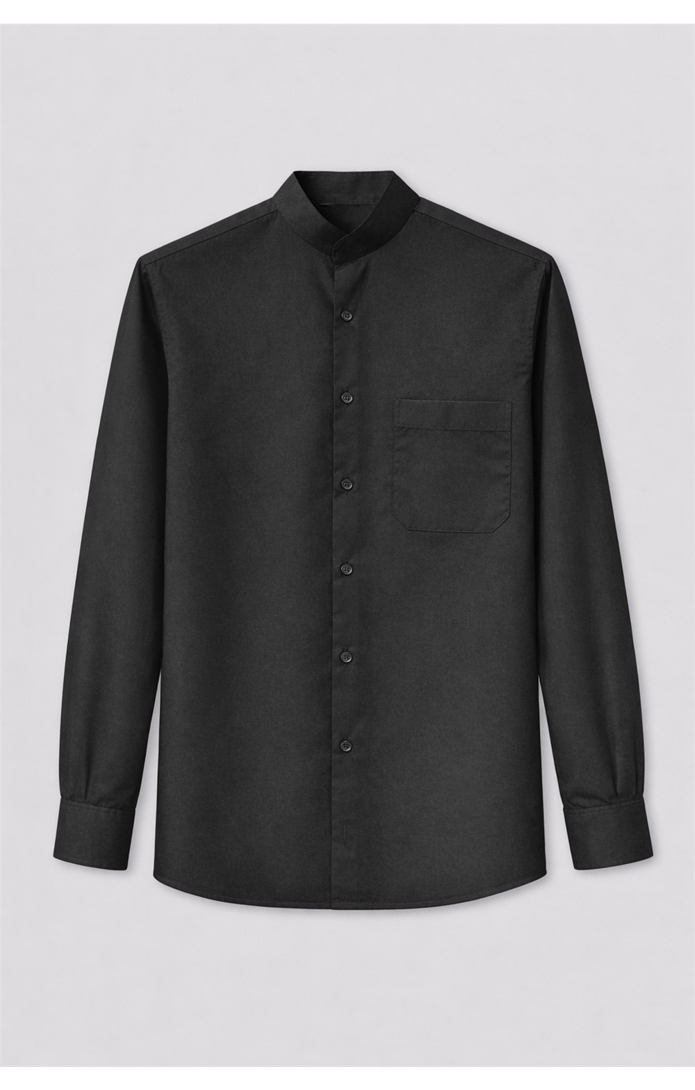 -Camisa caballero -Cuello Mao -Bolsillo en pecho -Botón en puño -Dos pinzas en la espalda
