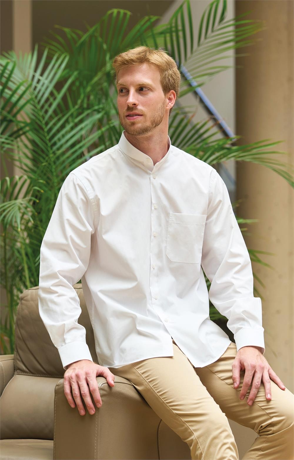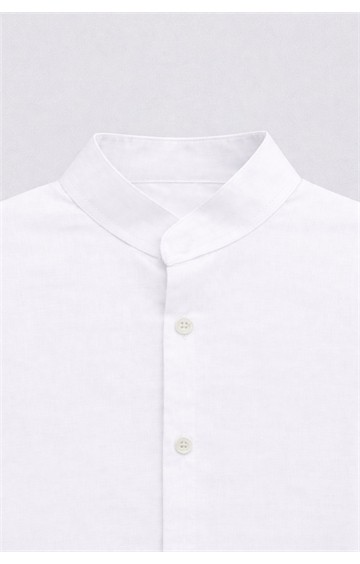 -Camisa caballero -Cuello Mao -Bolsillo en pecho -Botón en puño -Dos pinzas en la espalda