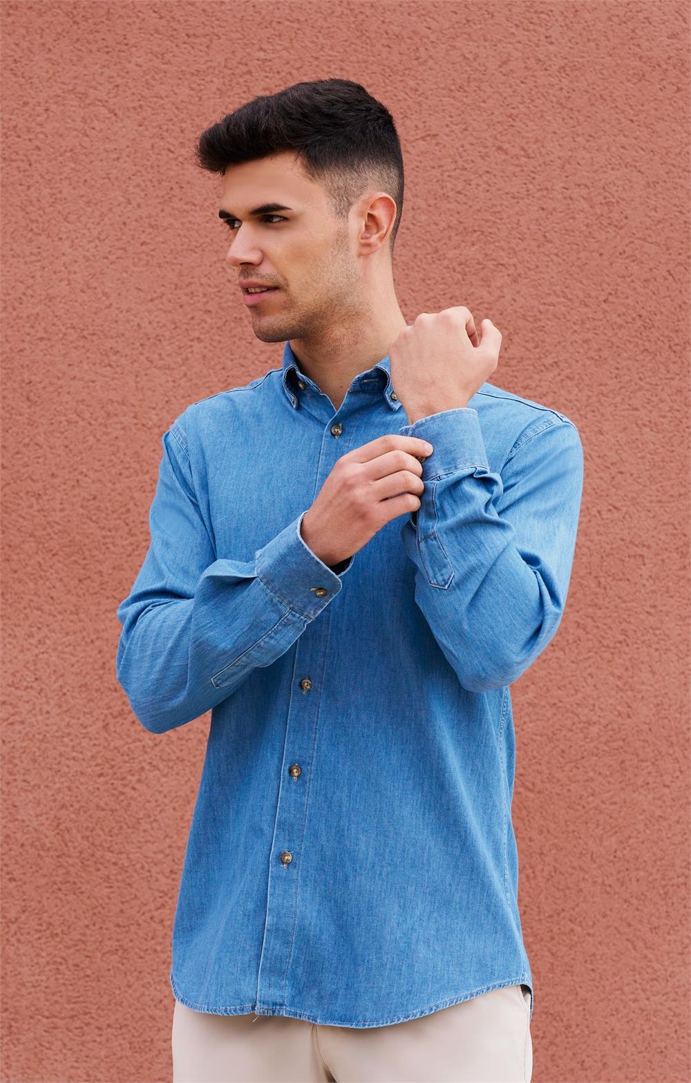 Camisa vaquera - Manga larga - Botón en el cuello - Dos pinzas en espalda
