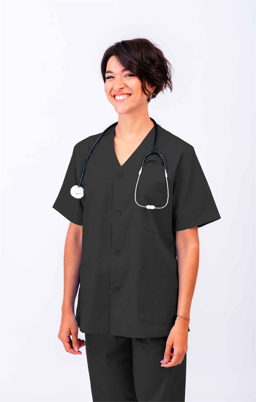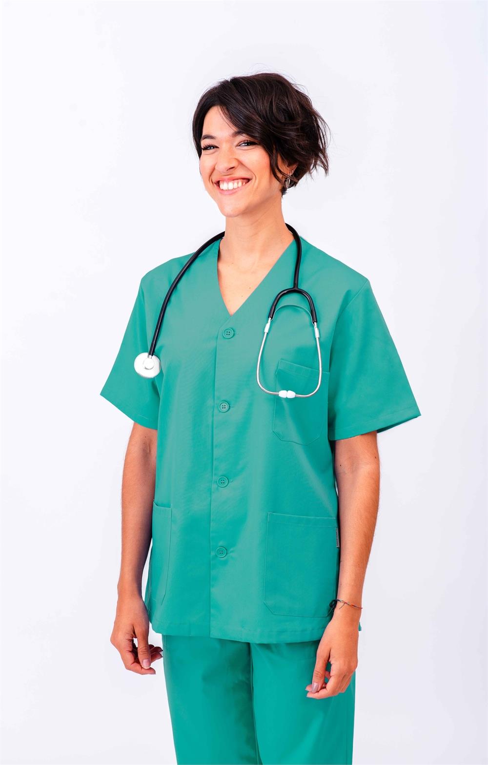 Casaca sanitaria abierta cuello pico