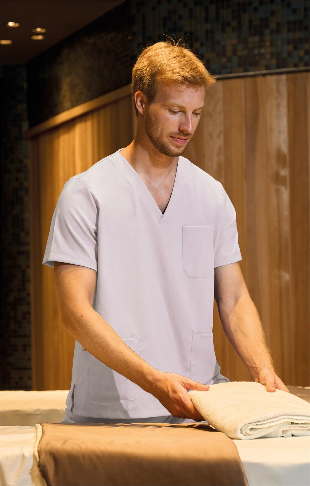 Casaca Sanitaria cuello pico cerrada, tres bolsillos hidroflex