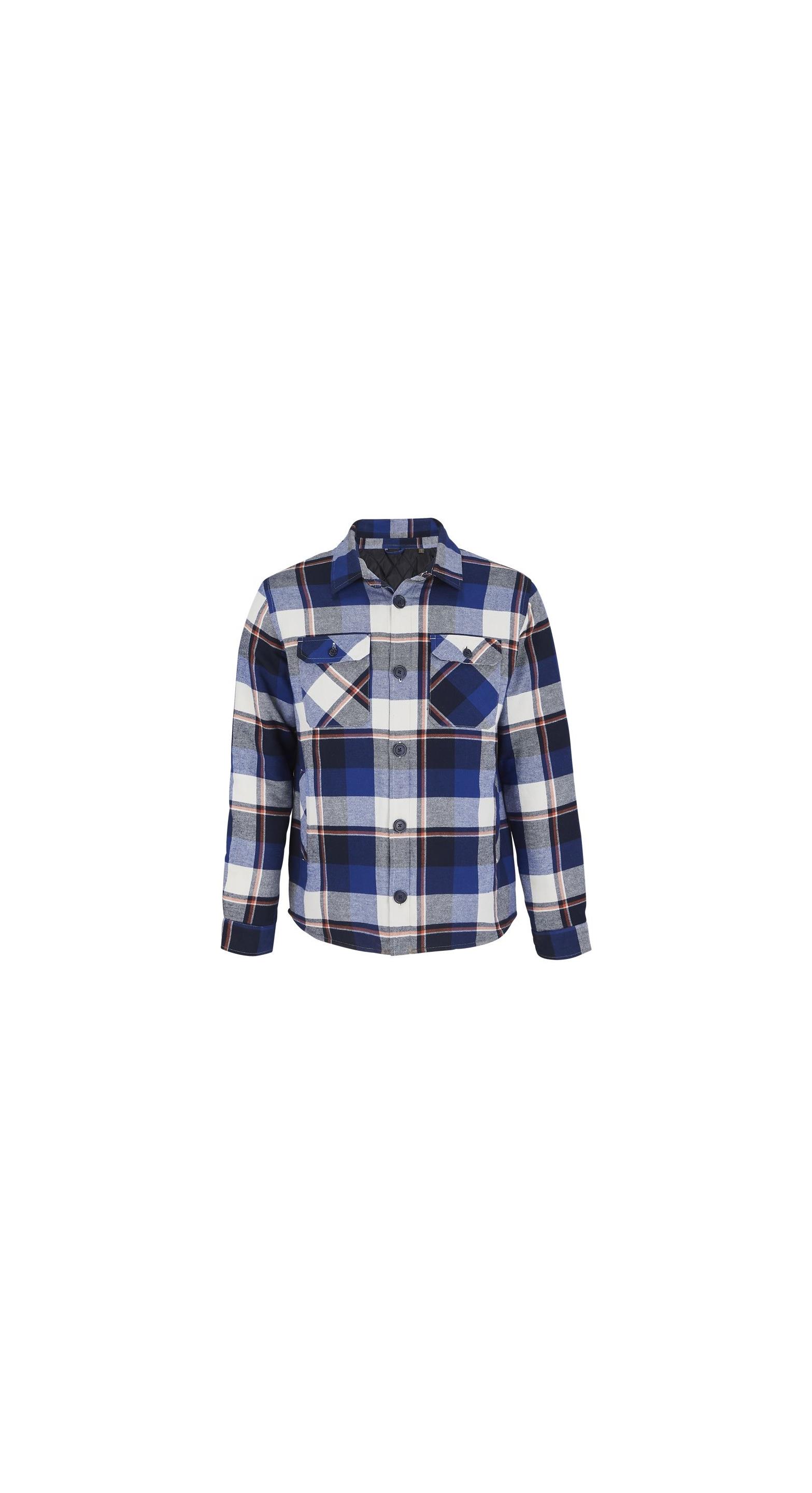 Existe en 3 diseños a cuadros diferentes - Abertura principal abotonada - Cuello camisa - Bolsillos laterales - 2 bolsillos de parche en el pecho, abotonados - Puños abotonados con una abertura - Bolsillo interior en el pecho en el lado del corazón con cierre Velcro - Forro acolchado - Cremallera interior bajo del dorso para la personalización - Dorso alargado y corte cómodo