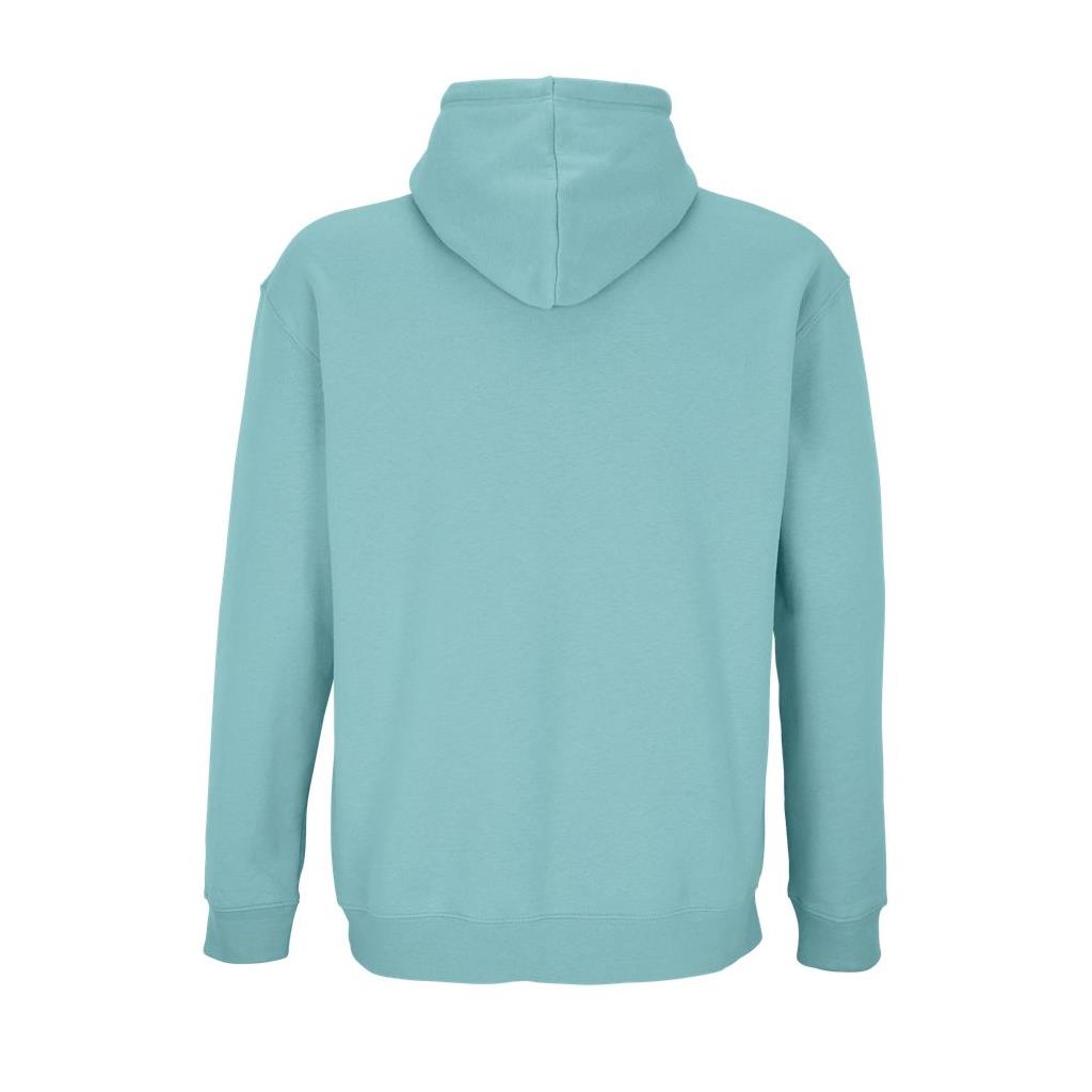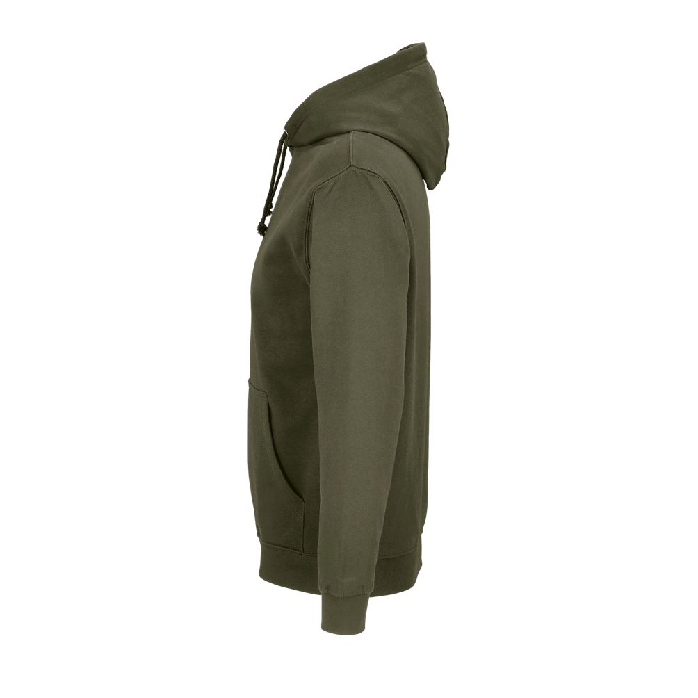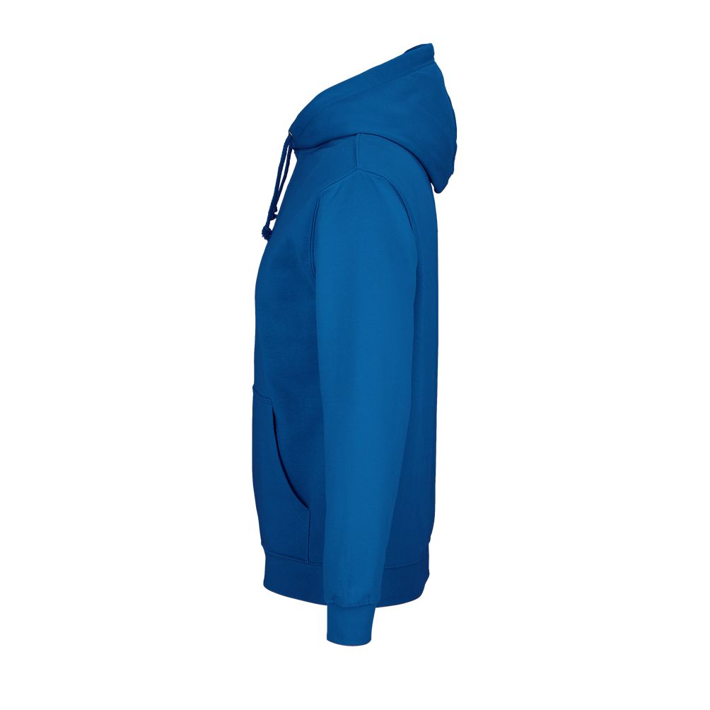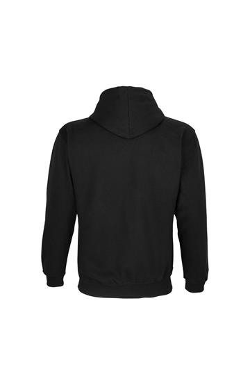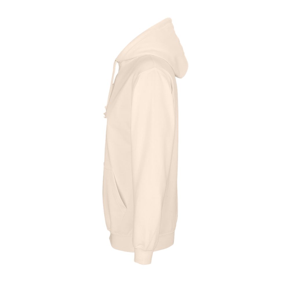 Mangas montadas - Cortada y cosida - Acabado de canalé 1x1 en puños y bajo - Bolsillo canguro - Capucha forrada con cordón de ajuste tono sobre tono y ojales de metal - Media luna y tapacosturas de punto liso en el cuello