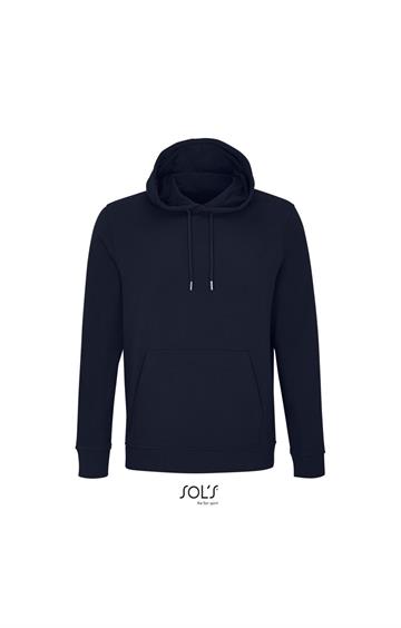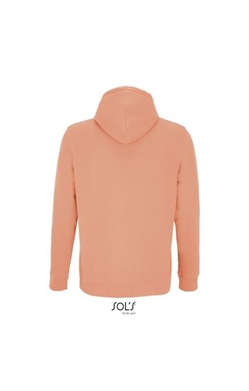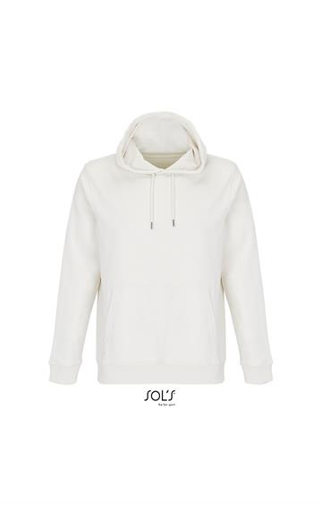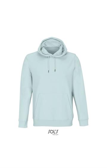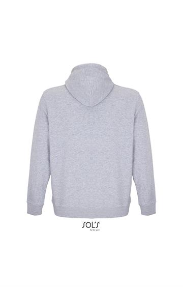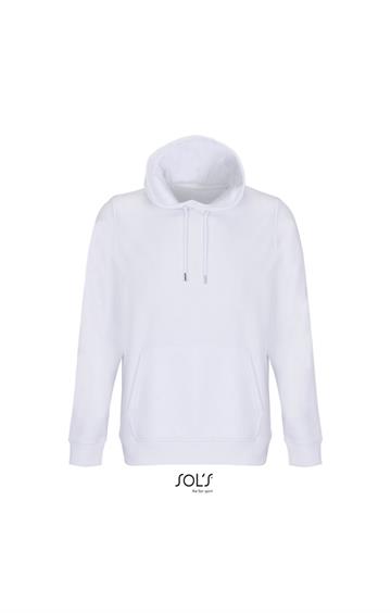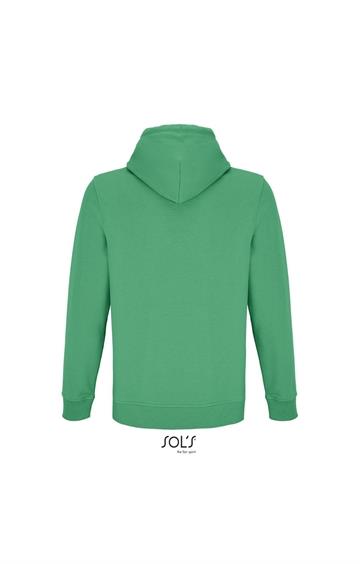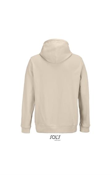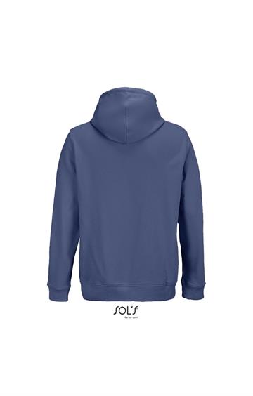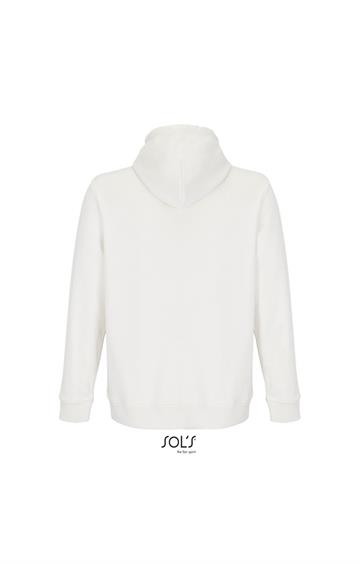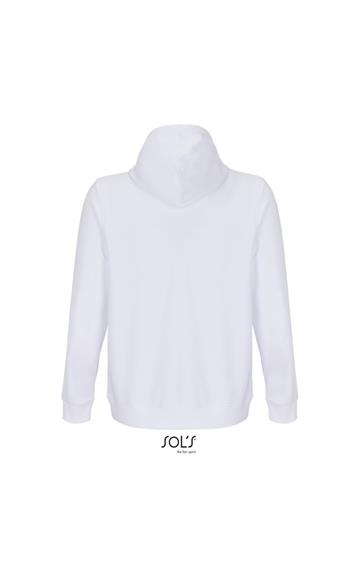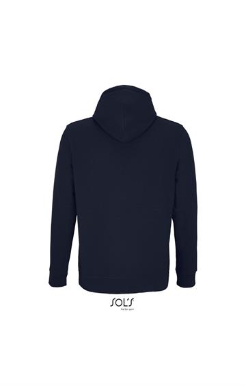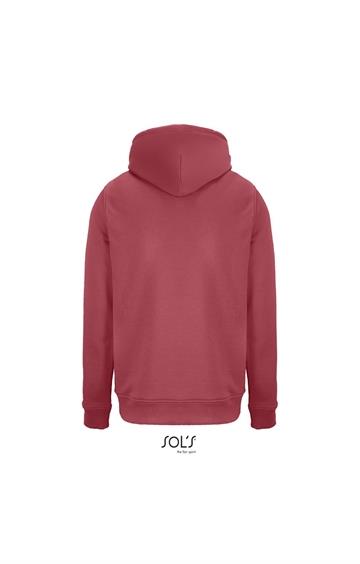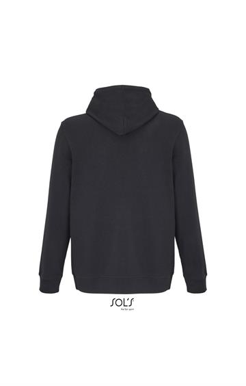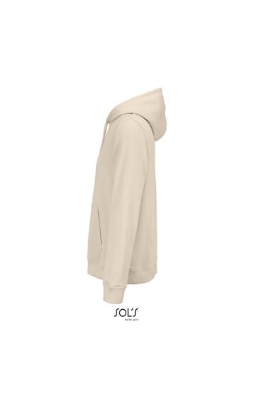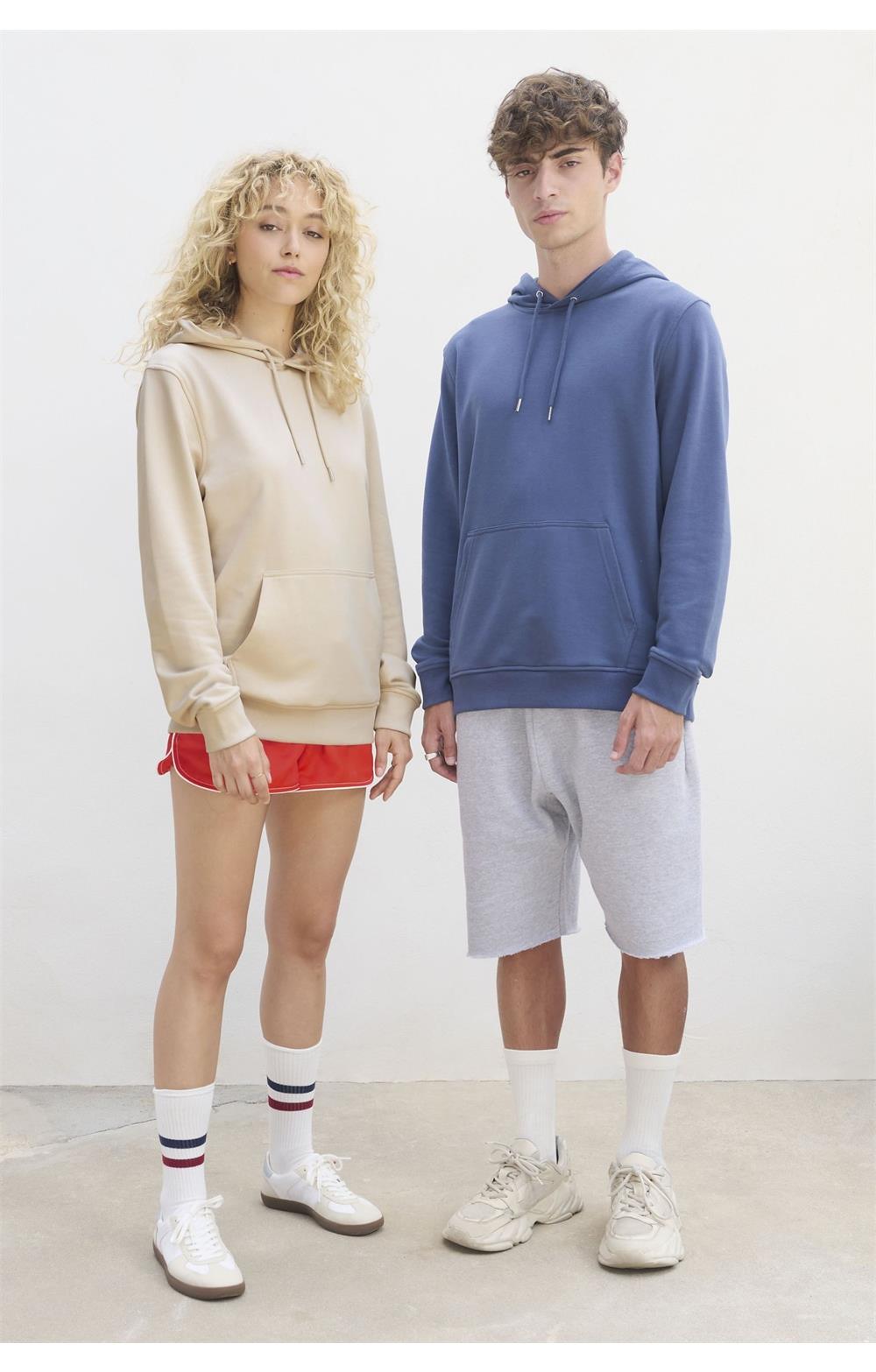 Cortada y cosida - Mangas montadas - Acabado de acanalé 2x2 en puños y bajo - Bolsillo canguro - Media luna y tapacosturas de punto liso en el cuello - Capucha forrada de punto liso - Cordón de ajuste con ojales y topes de metal