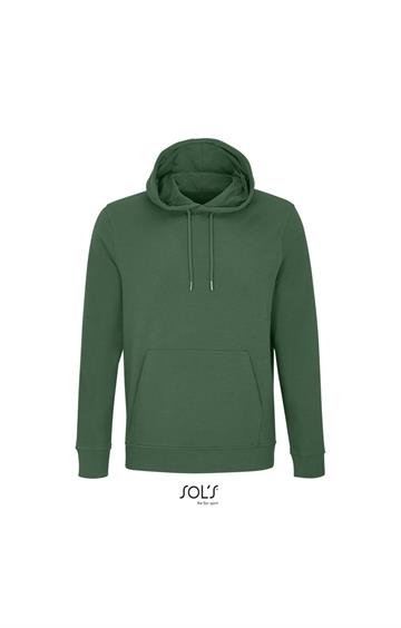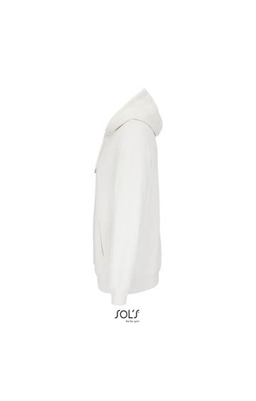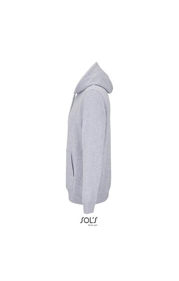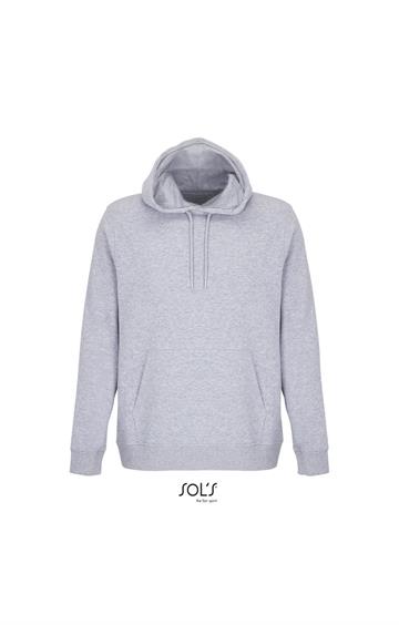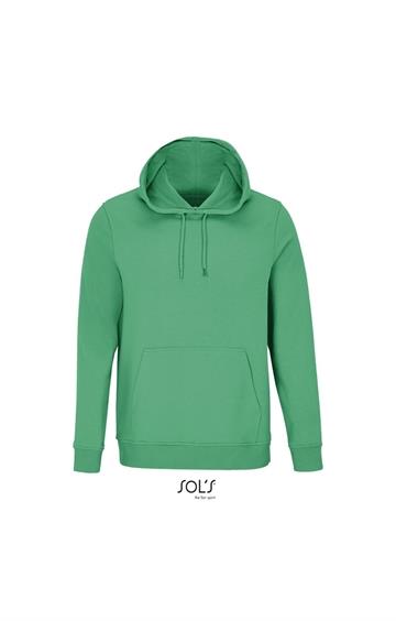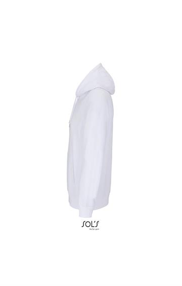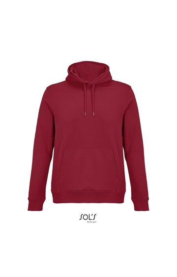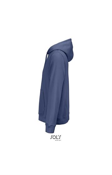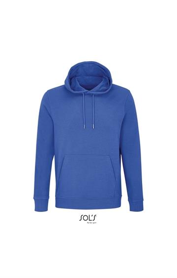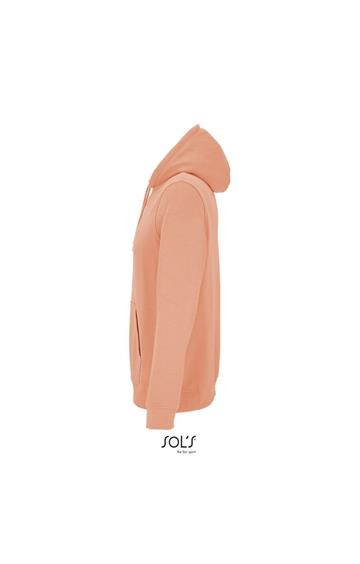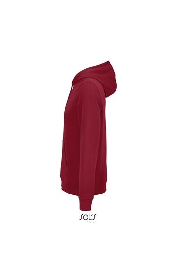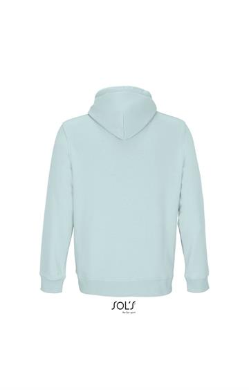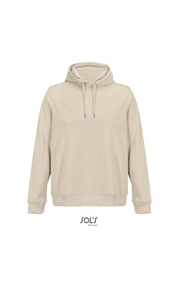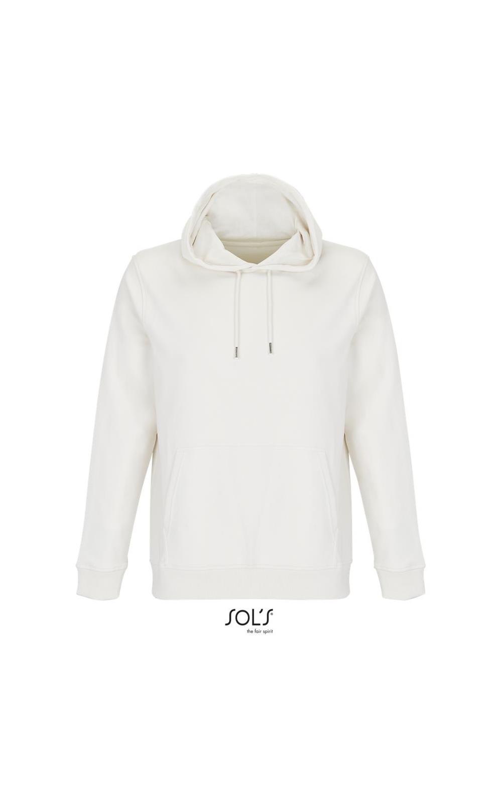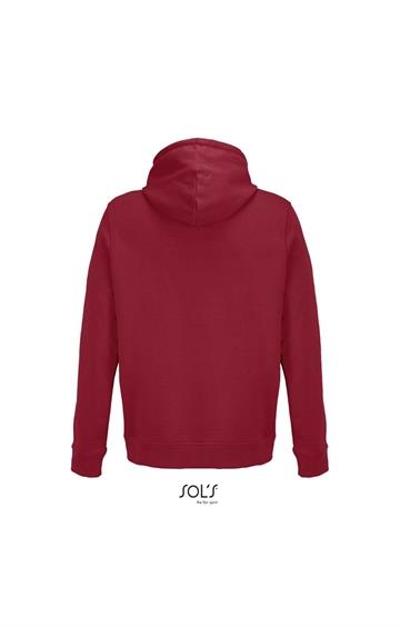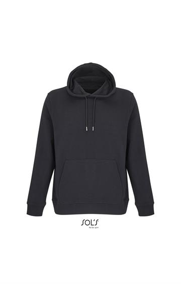 Cortada y cosida - Mangas montadas - Acabado de acanalé 2x2 en puños y bajo - Bolsillo canguro - Media luna y tapacosturas de punto liso en el cuello - Capucha forrada de punto liso - Cordón de ajuste con ojales y topes de metal