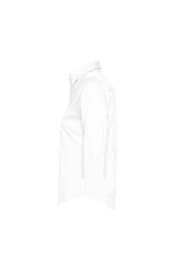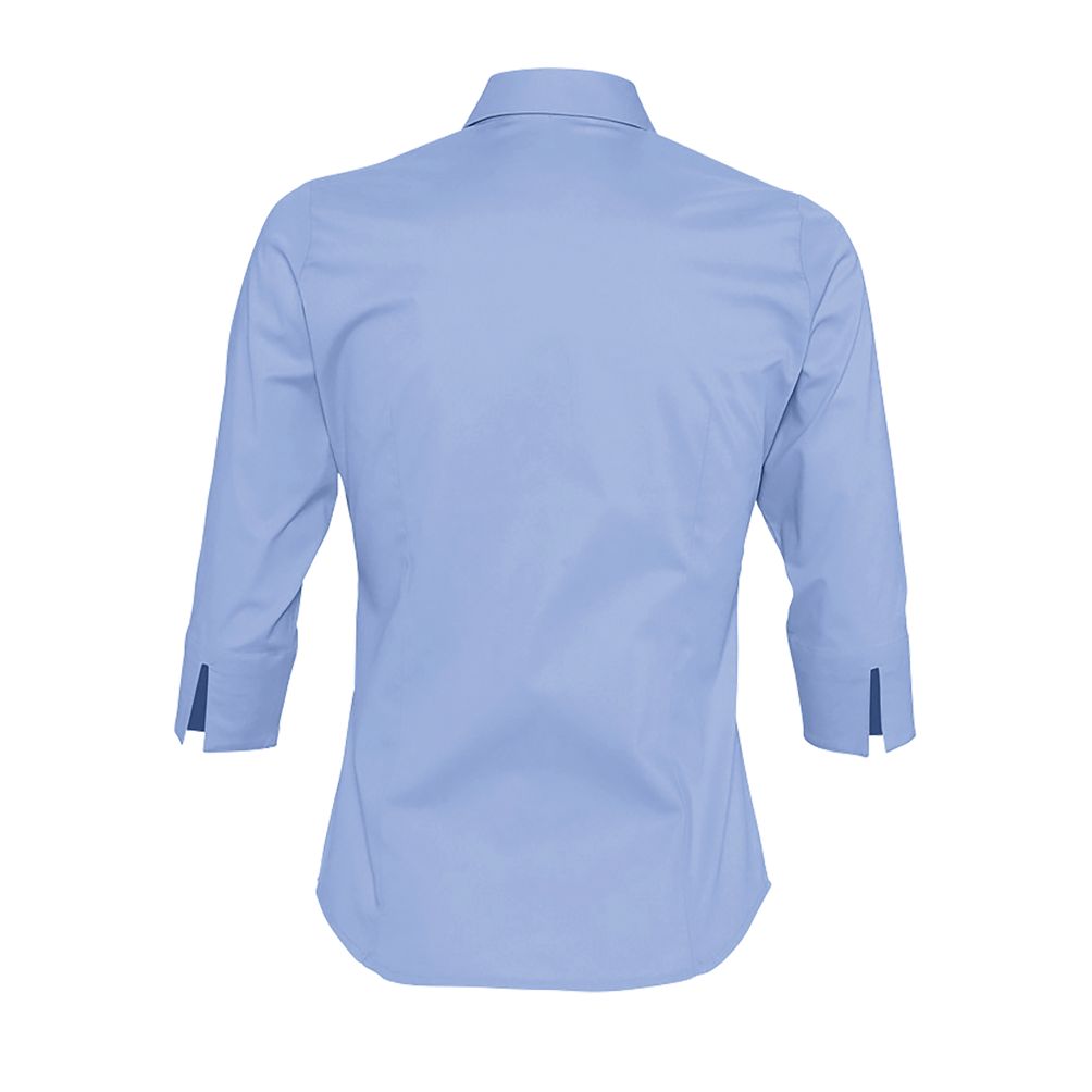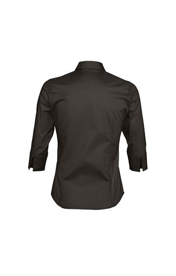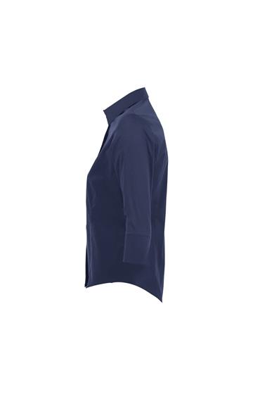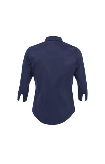 Corte ceñido - Mangas 3/4 con vuelta y abertura - Cuello con un solo botón - Tapeta de 7 botones tono sobre tono - Pinzas en la parte delantera y trasera
