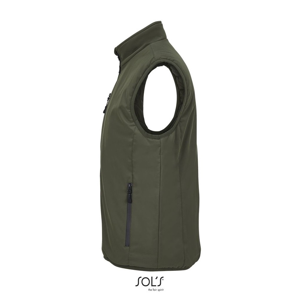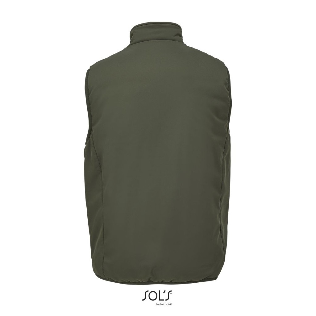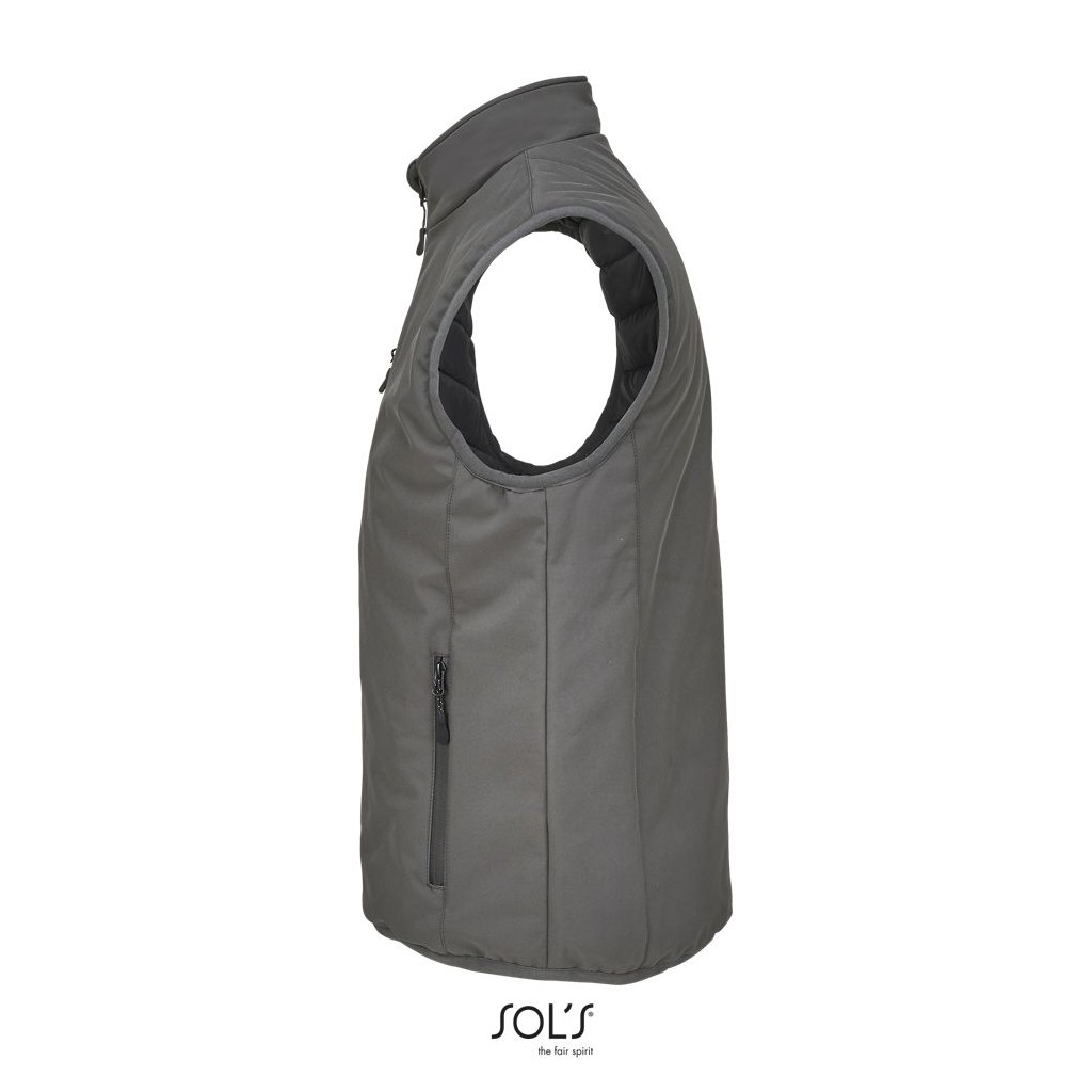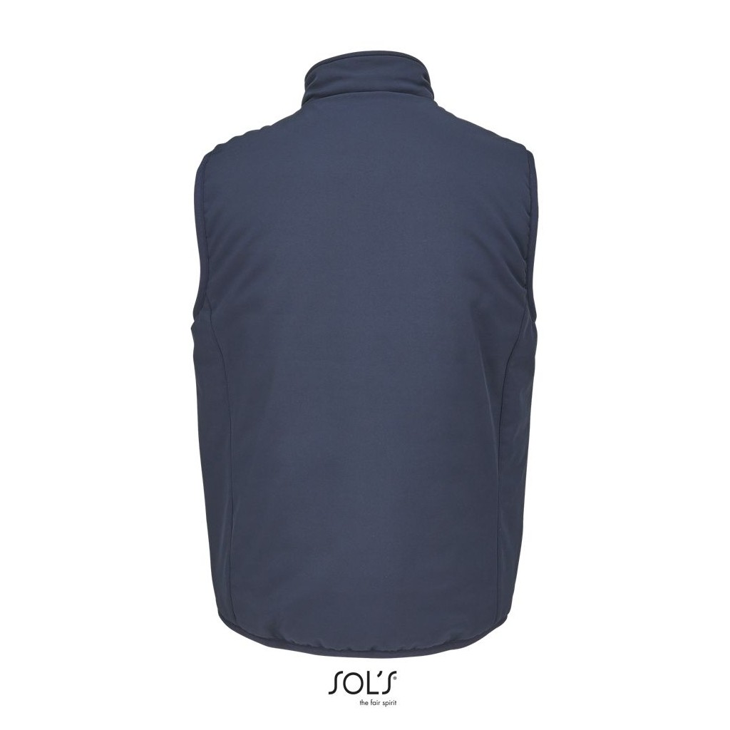 Chaleco totalmente acolchado - Cuello alto forrado con tejido polar - Abertura principal, bolsillos laterales y bolsillo de pecho con cremallera de nylon impermeable negra - 3 bolsillos interiores - Cremallera para la personalización - Sisas y bajo elásticos tono sobre tono .