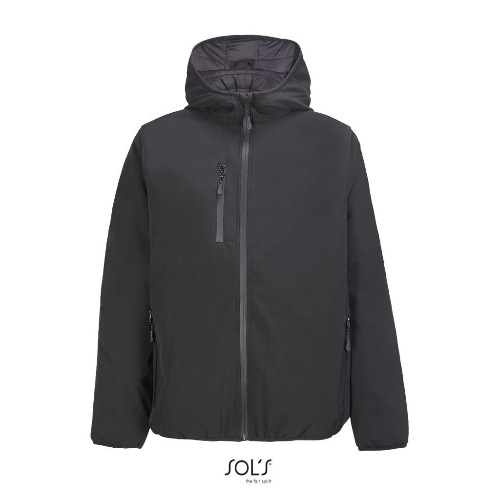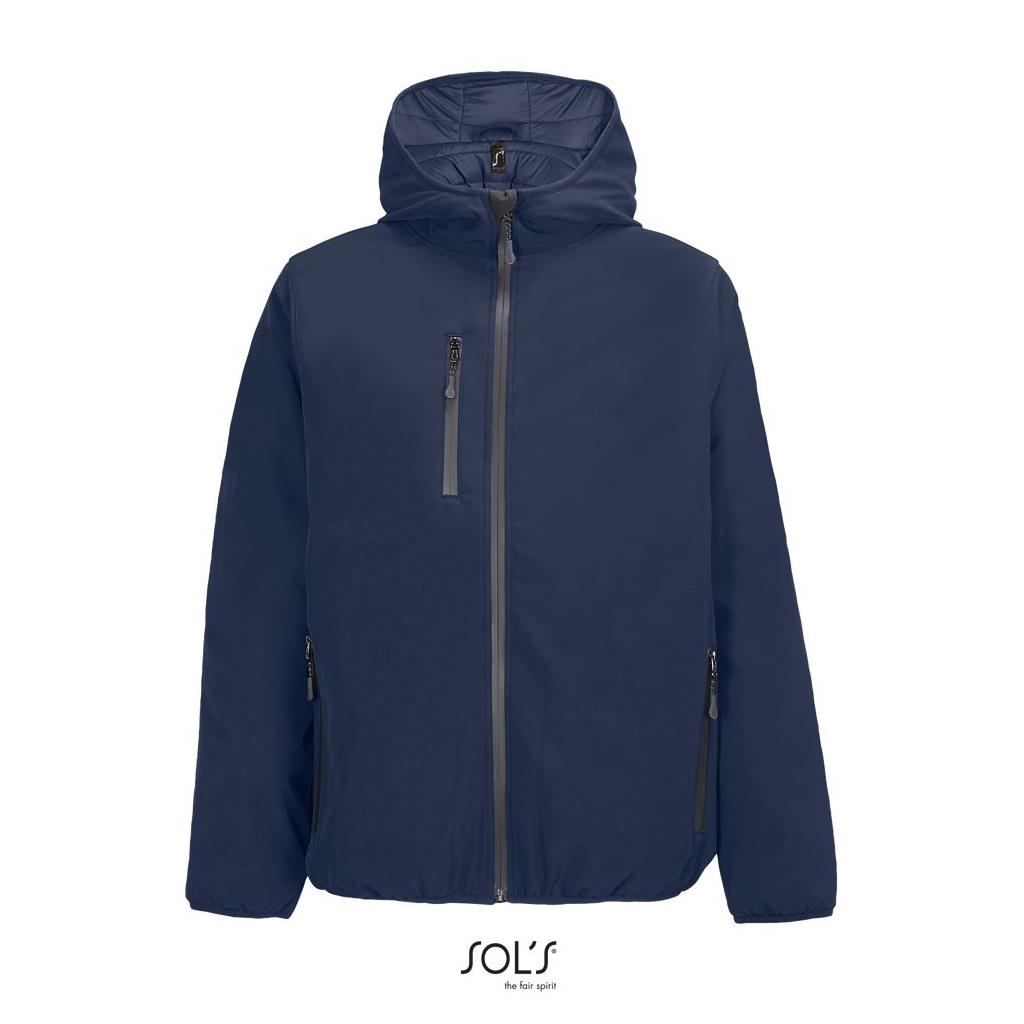 Softshell de invierno totalmente acolchado - Capucha con borde elástico - Abertura, bolsillos laterales y bolsillo de pecho con cremallera de nylon impermeable negra - 3 bolsillos interiores - Cremallera para la personalización - Puños y bajo elásticos tono sobre tono