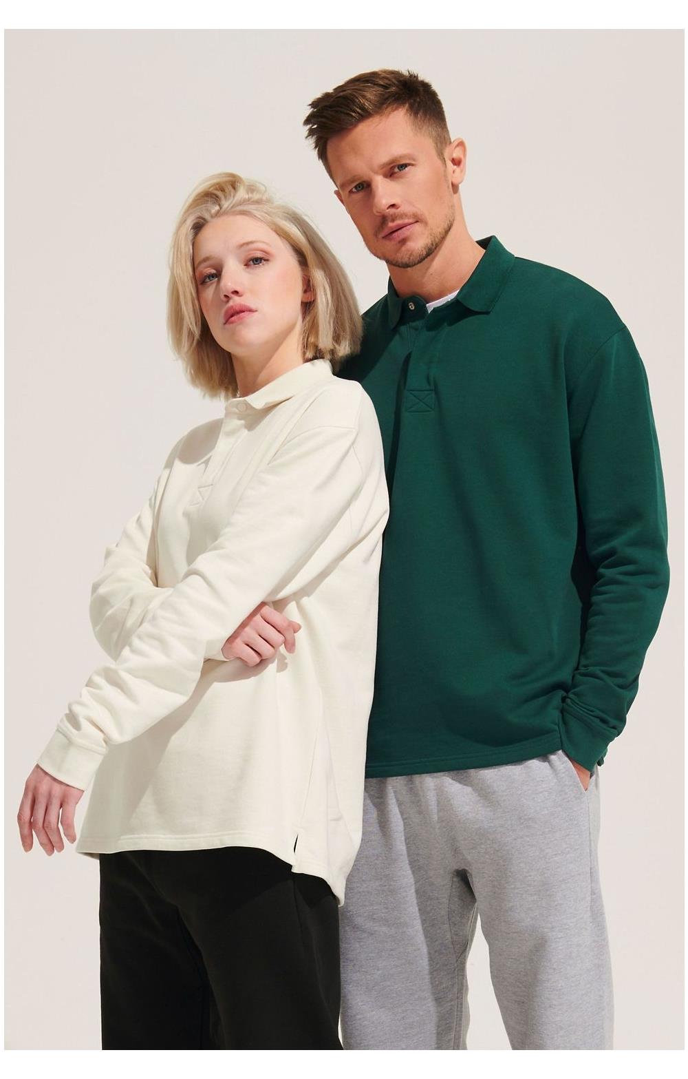 Cuello polo - Tapeta oculta con broches de presión - Puños borde acanalado 1x1 con elastano - Pie de cuello en punto - Cortado y cosido - Corte cómodo - Aberturas laterales en el bajo