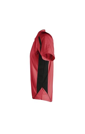 Cuello inglés cerrado contrastado - Mangas raglán - Grandes canesúes en tejido “nido de abejas” sobre los lados transpirable sobre las mangas, garantizando una regularización de la transpiración - Faldón de atras redondeado y ligeramente alargado - Costuras reforzadas - Manga corta