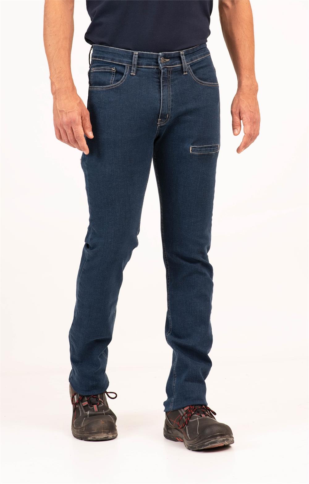 Vaquero - Estilo 5 bolsillos - Bolsillo supletorio en muslo - Elástico - Lavado a la piedra - Cremallera YKK