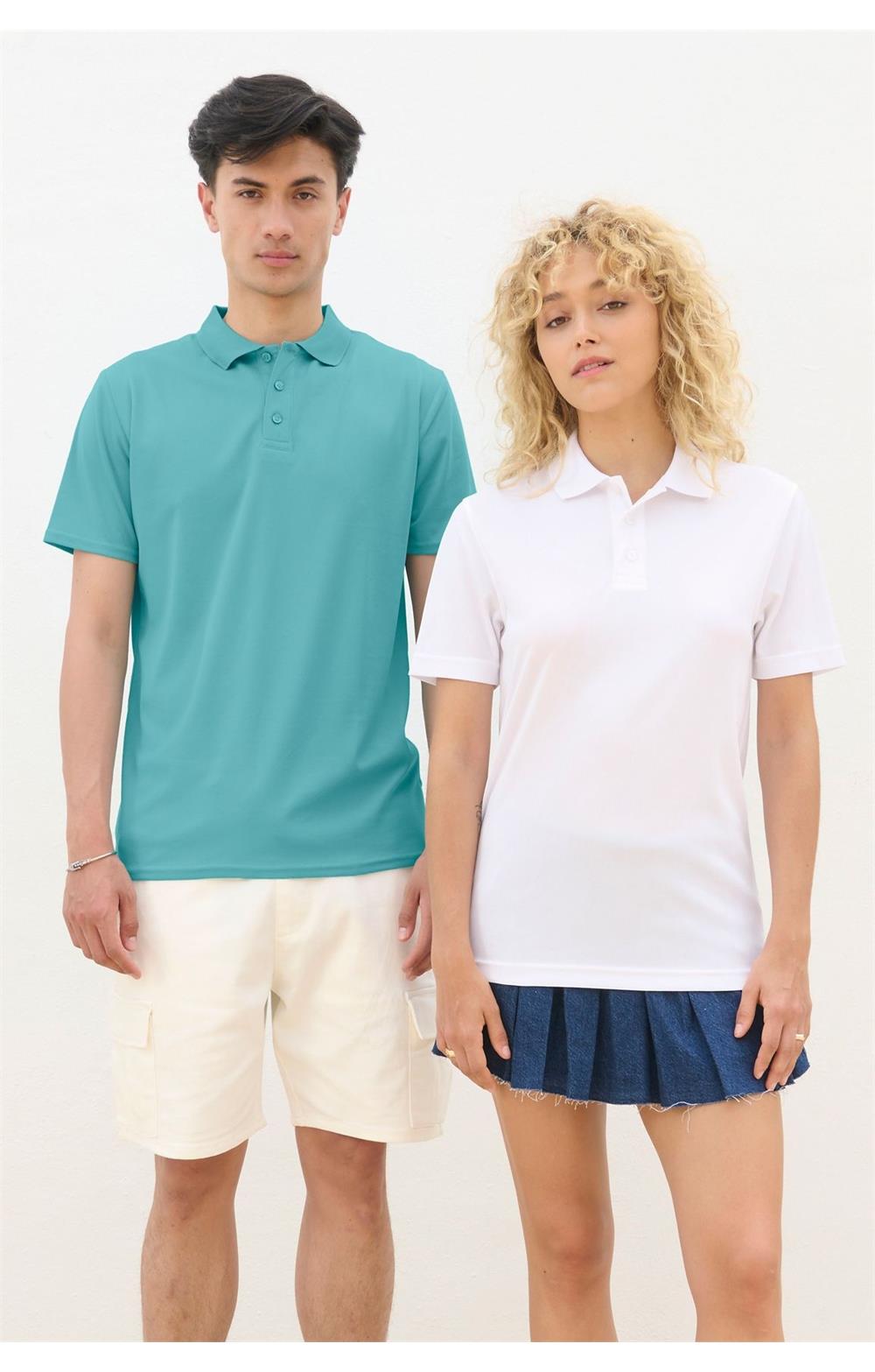 Manga corta - Cortado y cosido - Tapeta reforzada con 3 botones tono sobre tono - Tapacosturas en el cuello - Cuello acanalado - Producto apto para la sublimación