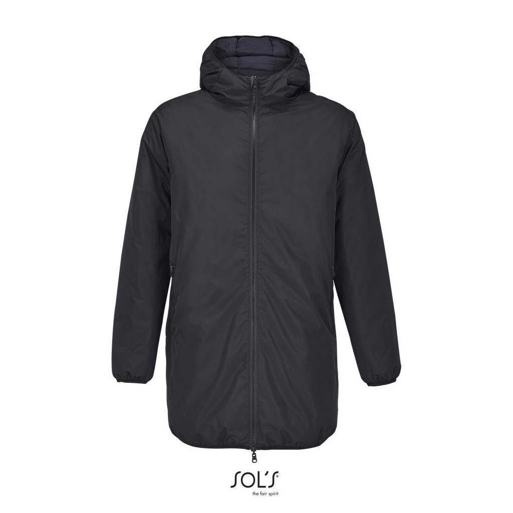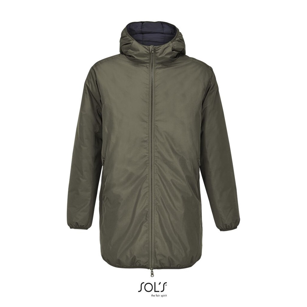 Chaqueta de longitud media reversible - Interior estilo chaqueta acolchada - Capucha con borde elástico - Abertura principal con cremallera inyectada reversible de doble cursor - Bolsillos exteriores con cremallera inyectada tono sobre tono - Bolsillos interiores con cremallera inyectada tono sobre tono y solapa - Puños y bajo elásticos - Cremallera para la personalización - Corte cómodo - Combinaciones de colores: negro y gris oscuro, french marino y denim, army y negro. .