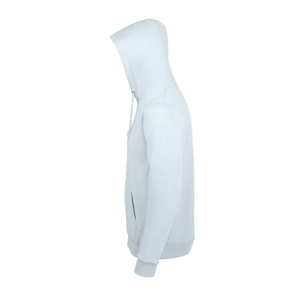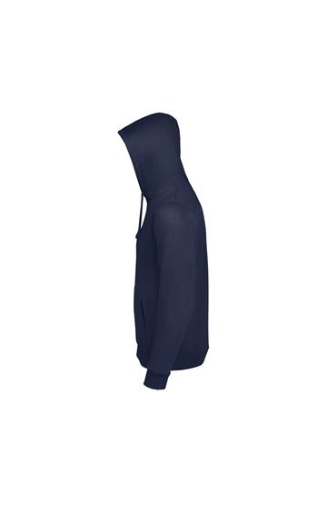 Bolsillo canguro - Cortado y cosido - Capucha forrada y dotada de cordón de ajuste - Acabado de canalé 2x2 en los puños y en el bajo - Media luna en el interior del cuello - Tapacosturas en el interior del cuello