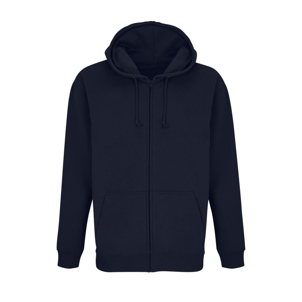 Mangas montadas - Cortada y cosida - Acabado de acanalé 1x1 en puños y bajo - Bolsillo canguro - Capucha forrada con cordón de ajuste tono sobre tono y ojales de metal - Abertura con cremallera oculta - Cremallera inyectada de plástico tono sobre tono con tirador de metal tono sobre tono - Media luna y tapacosturas de punto liso en el cuello