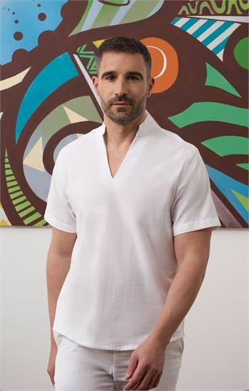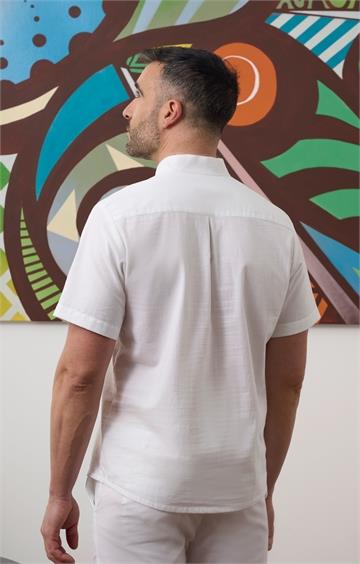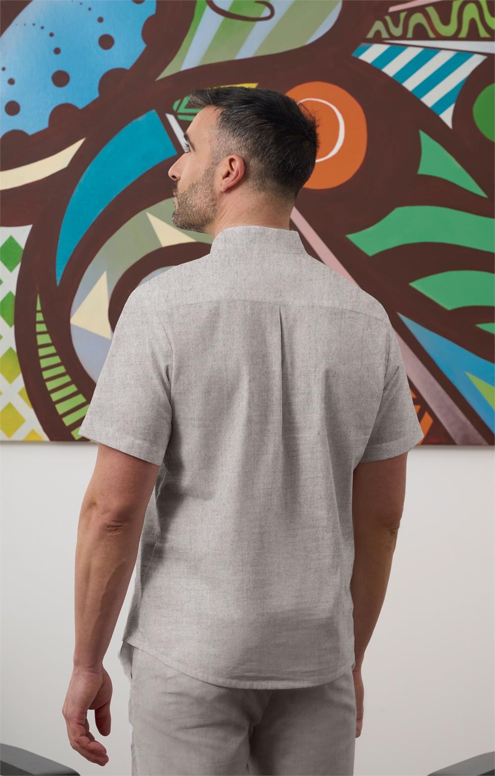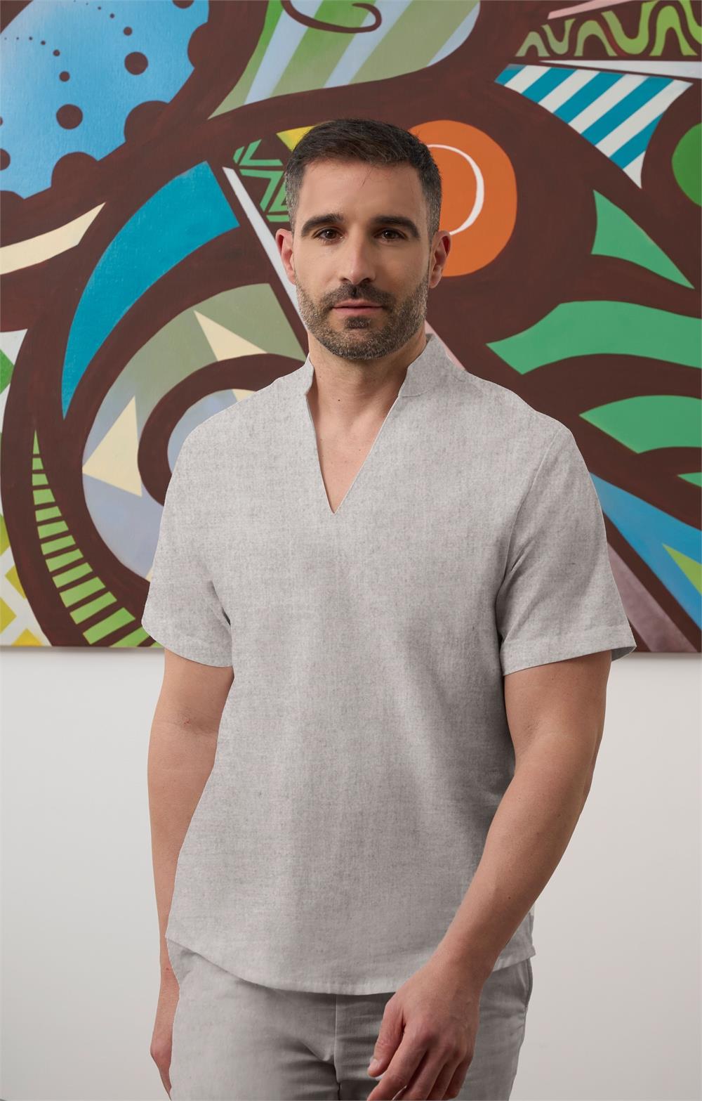 114023 - Polera unisex m/c oversize efecto lino cuello mao