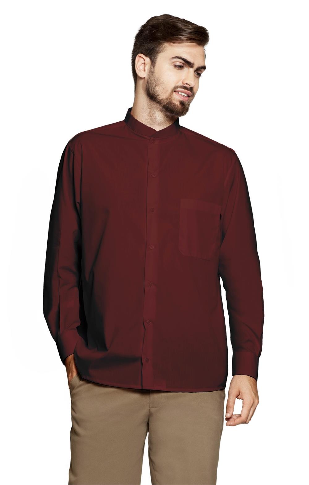 Camisa manga larga - Cuello mao - Botón en puño - Bolsillo en pecho - Dos pinzas en la espalda