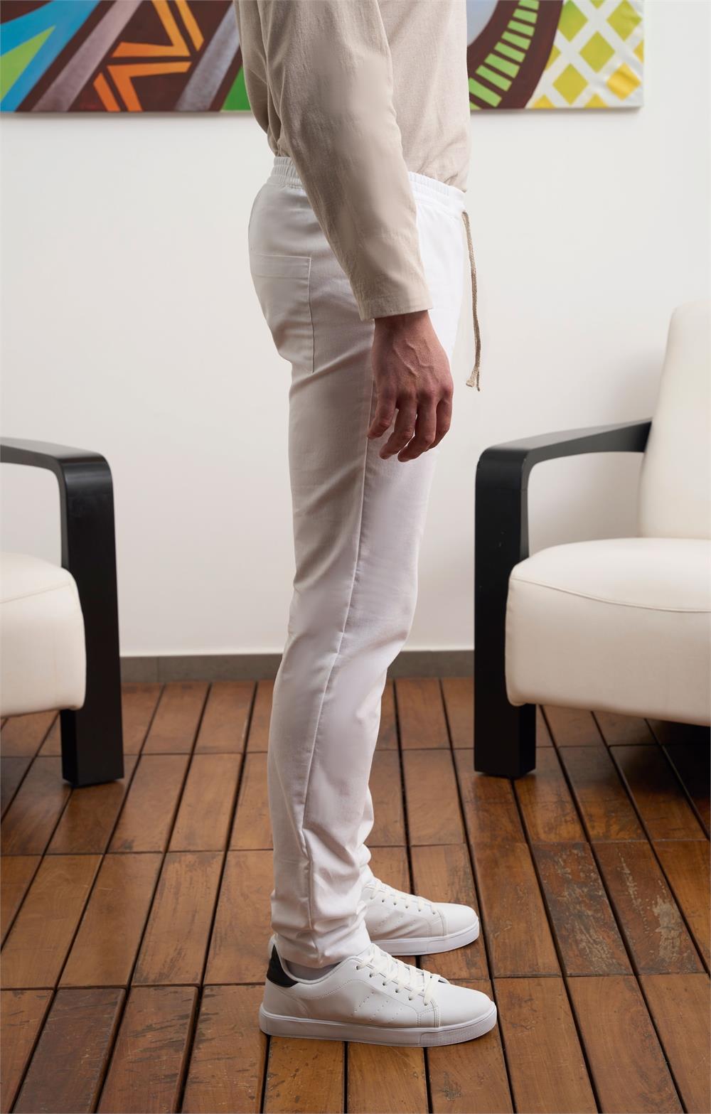 Pantalon unisex efecto lino , goma cintura, cordon , bolsillos tipo francés