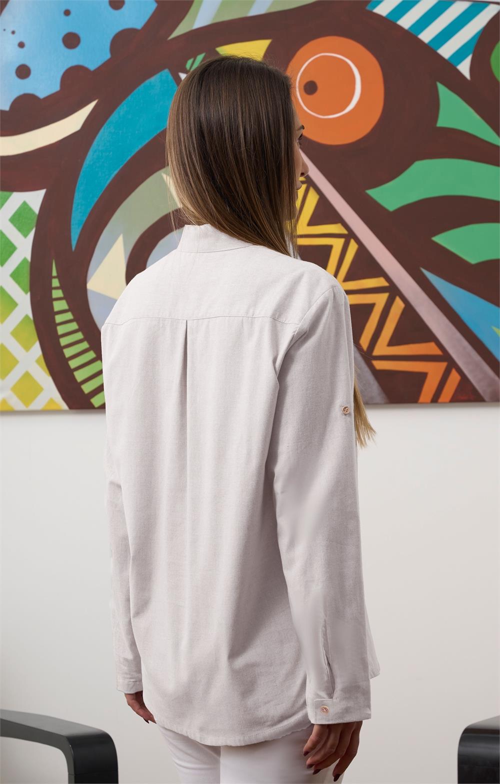 -Polera -Manga Larga -Oversize -Estilo Lino -Cuello Mao -Escote profundo