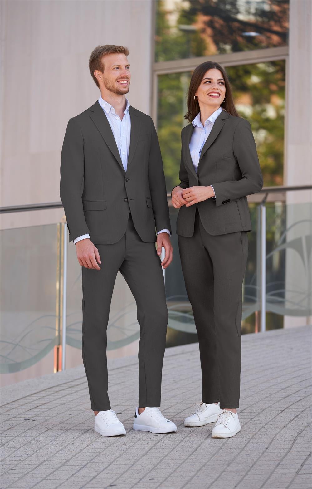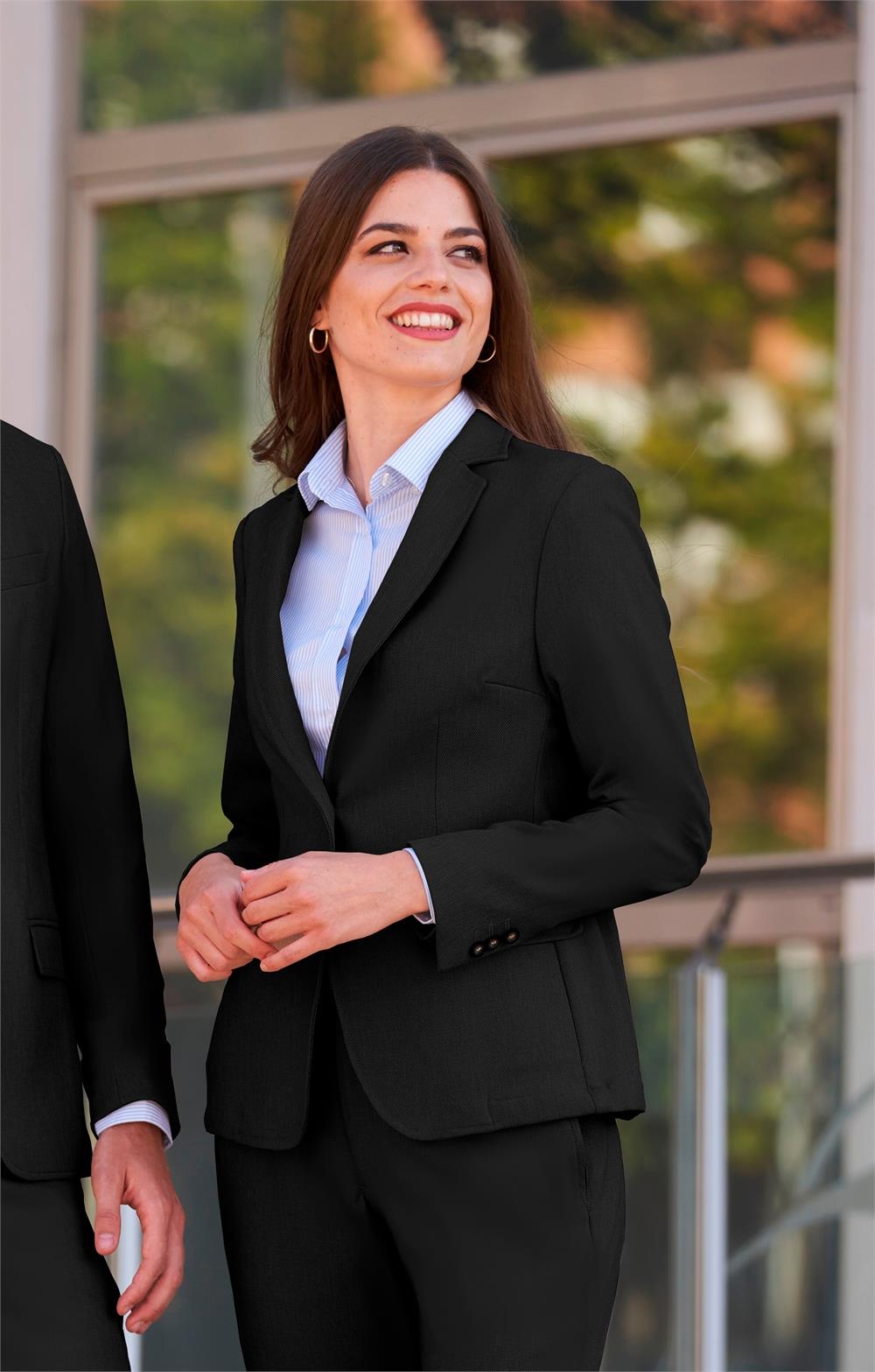 -Solapa recta -Sin forro -Dos botones bajos -Una abertura -Entallada -Elástica -Dos bolsillos