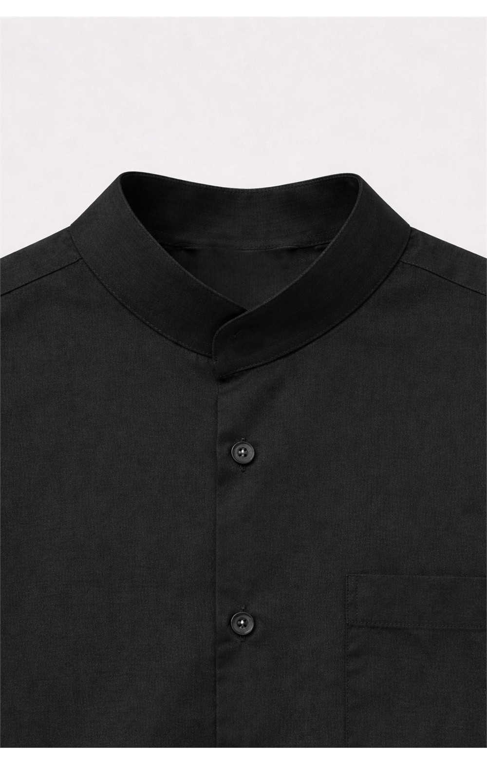 -Camisa caballero -Cuello Mao -Bolsillo en pecho -Botón en puño -Dos pinzas en la espalda