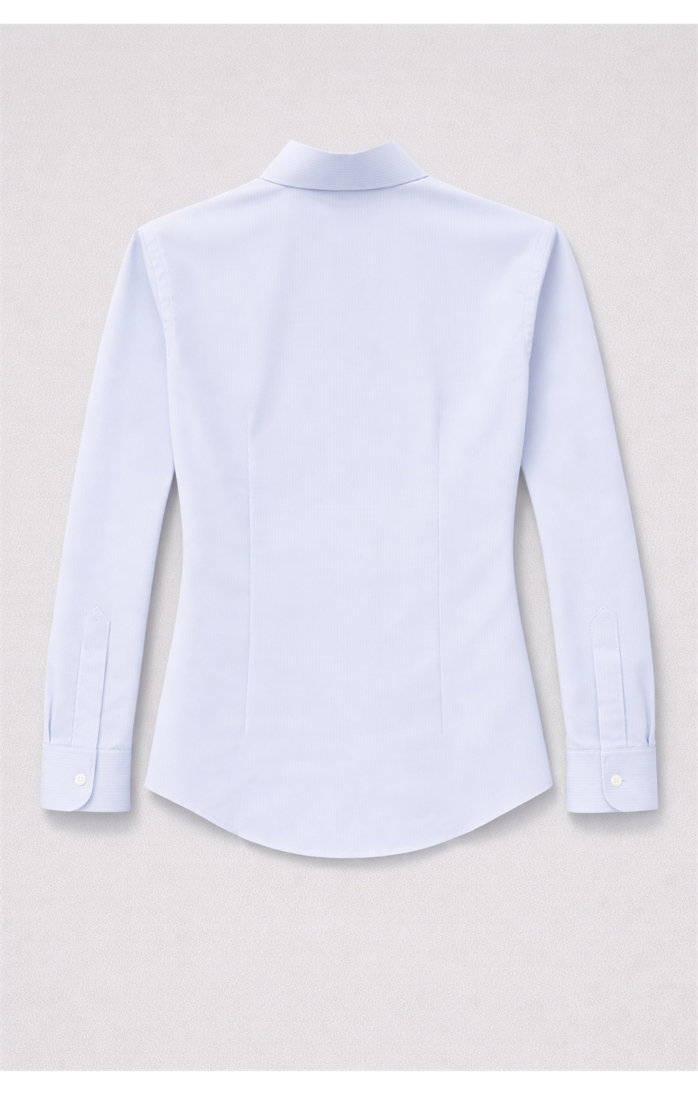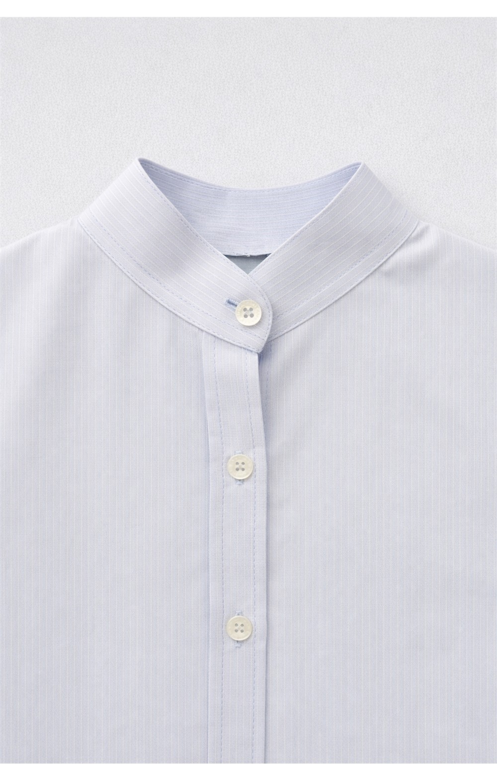 Blusa manga larga - Cuello tirilla - Tejido rayas finas - Botón en el puño - Bolsillo para coser - Semientallada