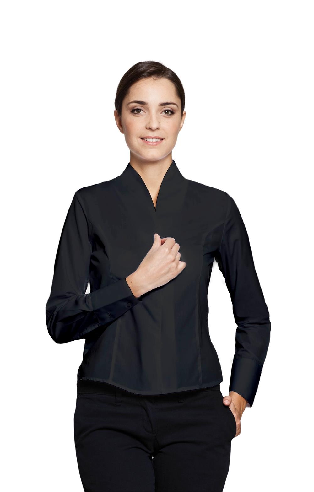 Camisa manga larga - Cuello chimenea - Dos pinzas delanteral - Botonadura interior, botones ocultos