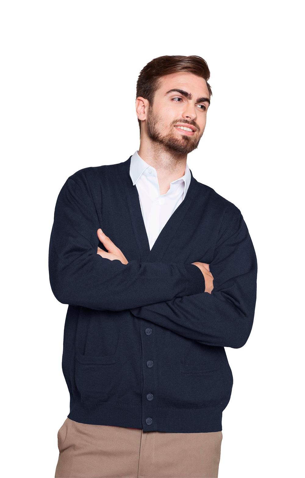 Chaqueta de caballero - Botones de pasta - Hilatura fina galga 12 - Canalé 2x1 en puños y cintura