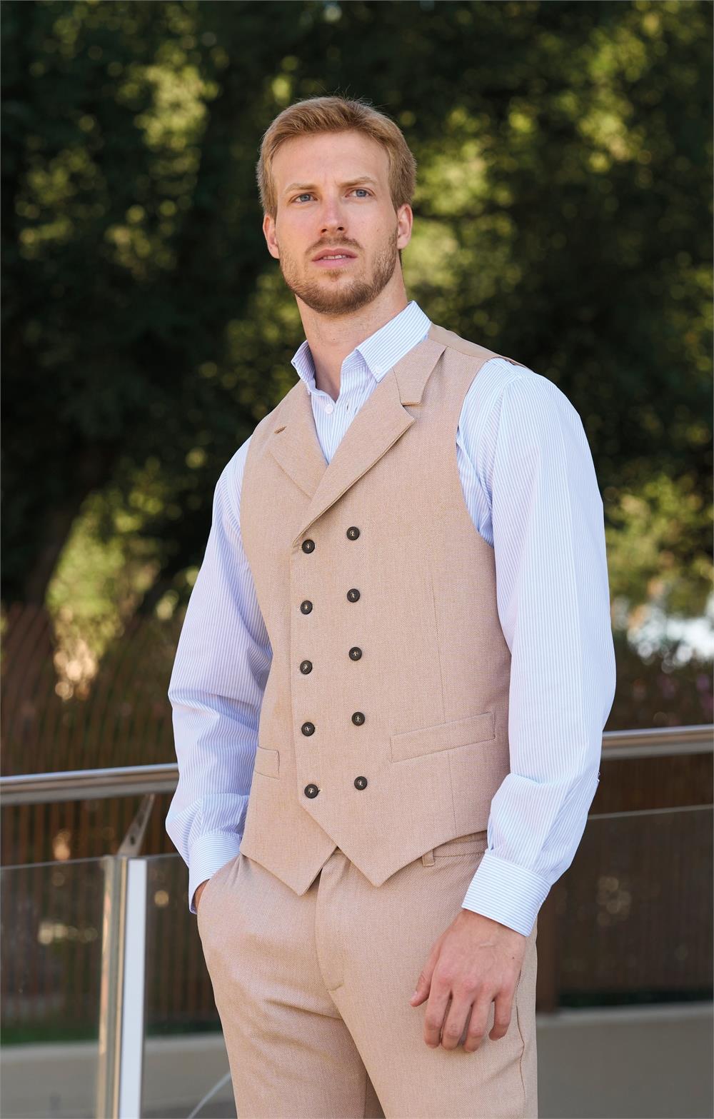 -Solapa recta -Forro en espalda -Doble fila de botones, botones funcionales y decorativos -Ajustador en espalda -Entallada -Elástica -Dos bolsillos