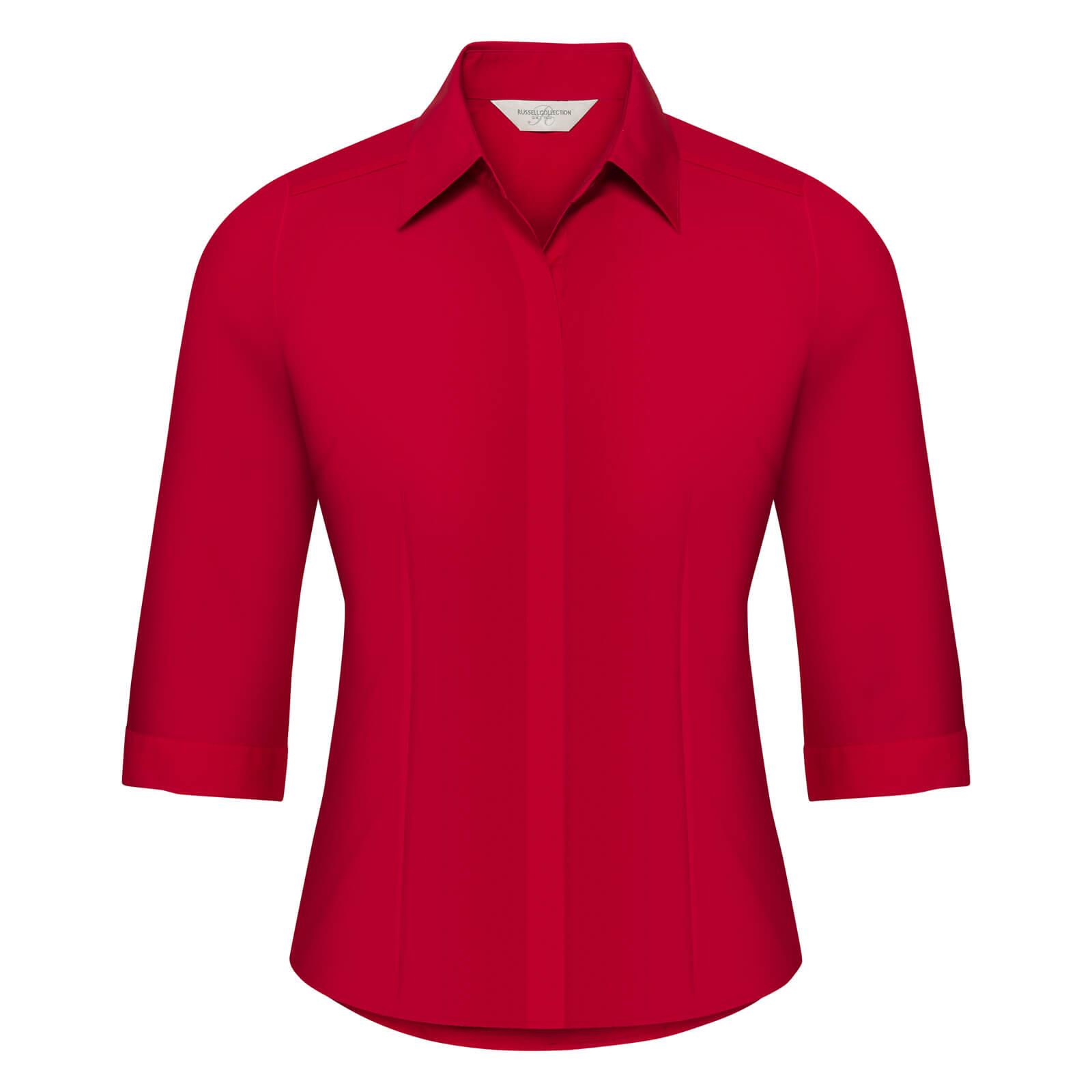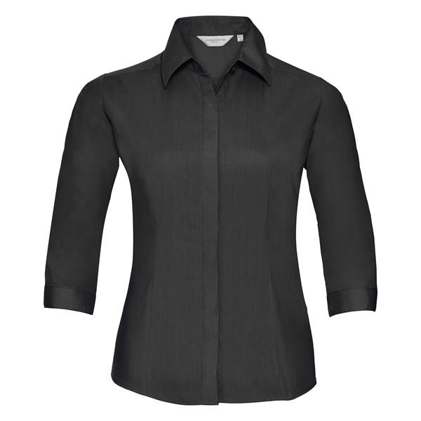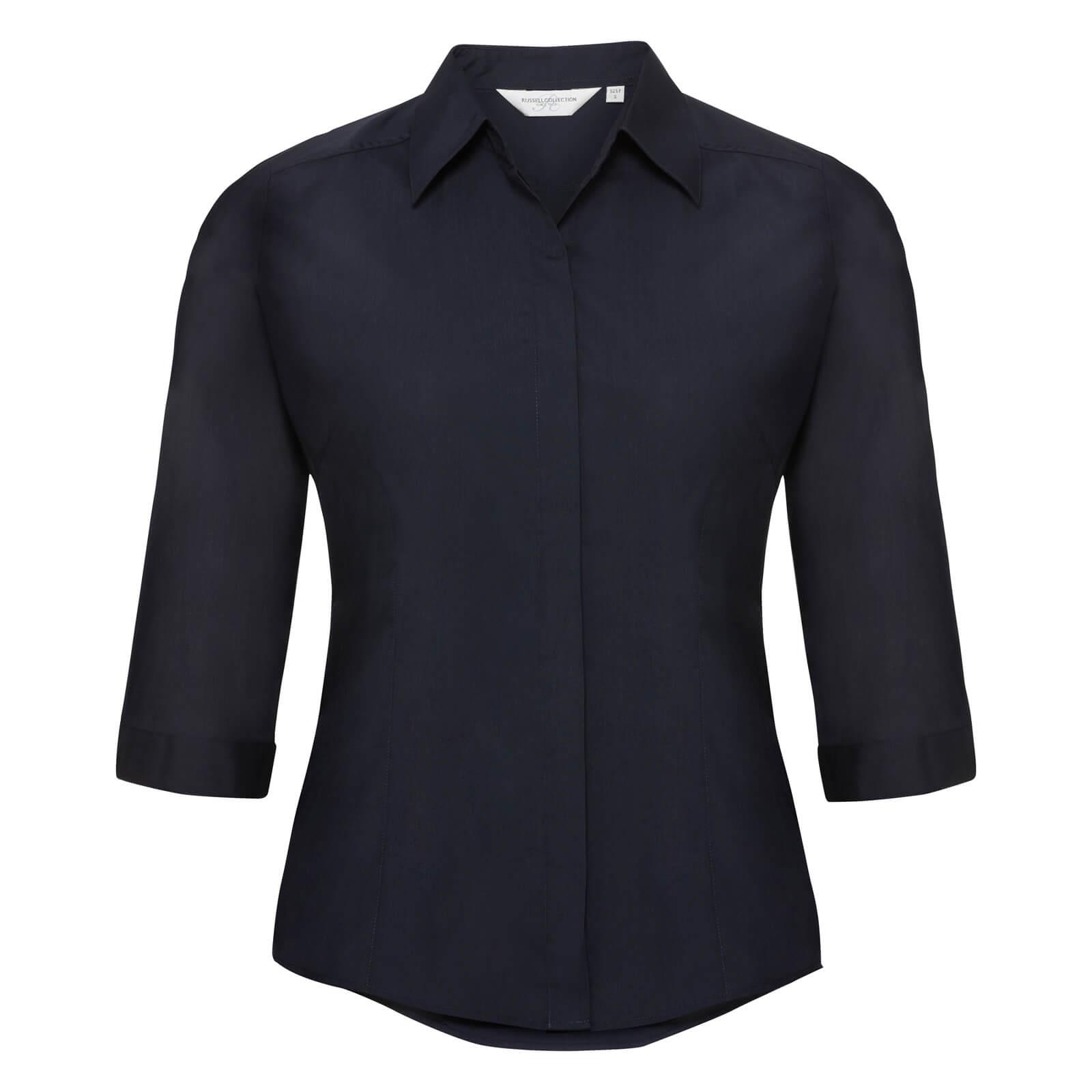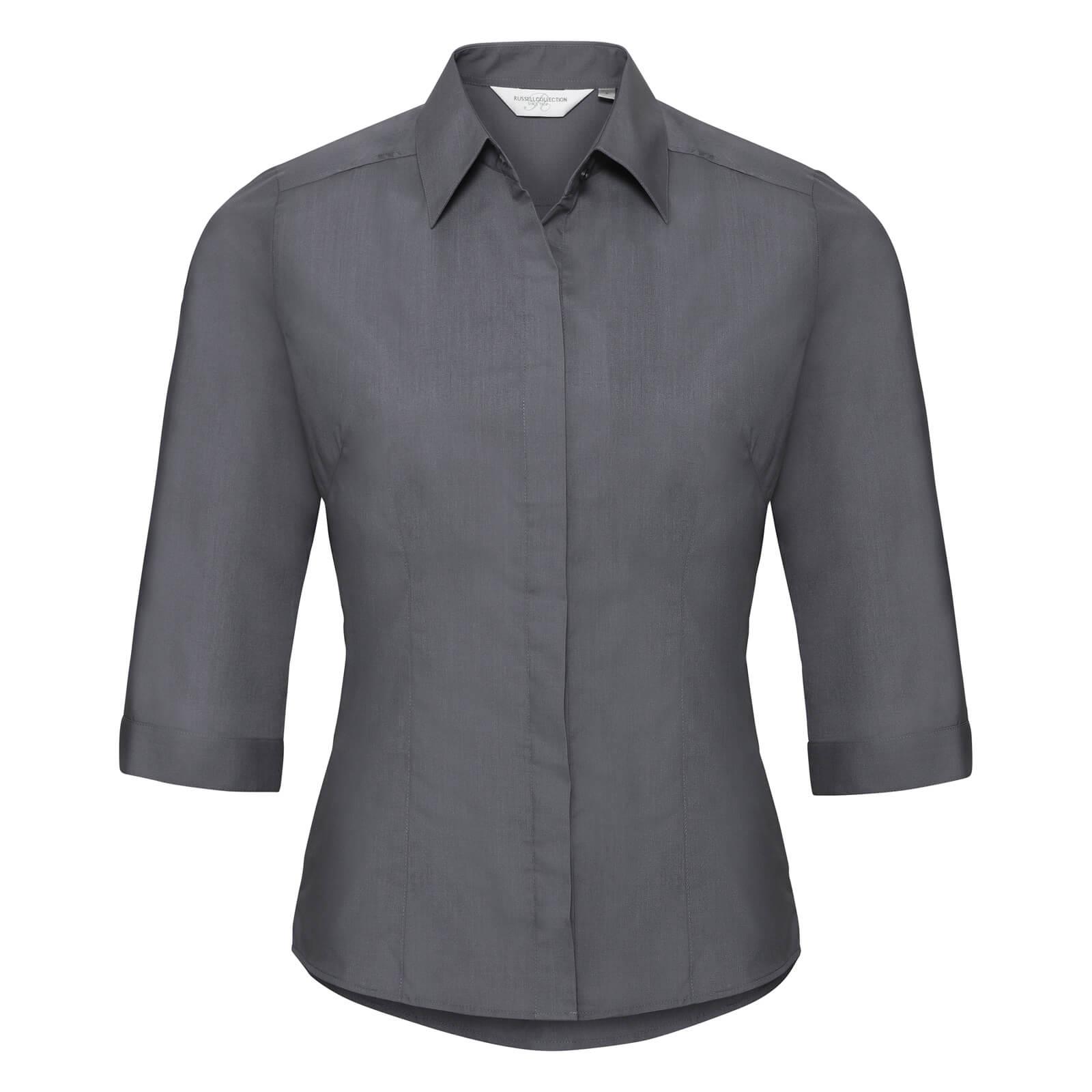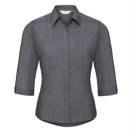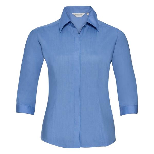 Camisa entallada de mujer de popelín manga 3/4 y fácil cuidado de poliéster y algodón