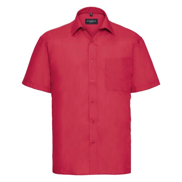 Camisa de hombre de popelín manga corta fácil cuidado de poliéster y algodón
