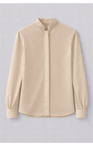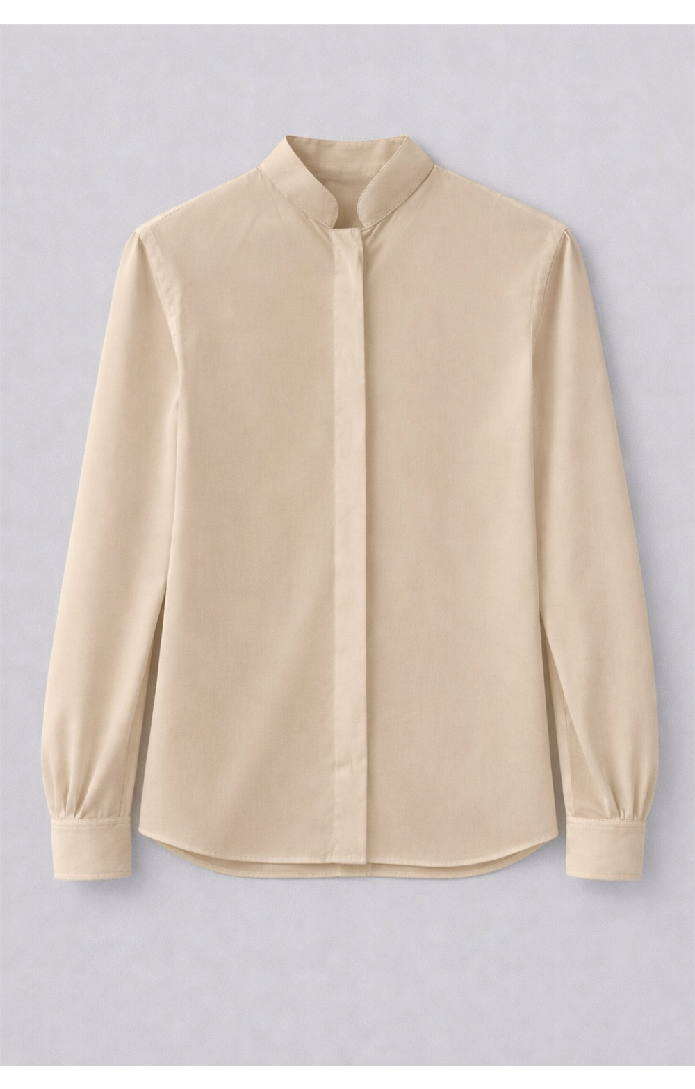 Camisa manga larga - Cuello mao - Botón en puño - Canesú en espalda - Botonadura oculta - Pinzas en espalda y delantero