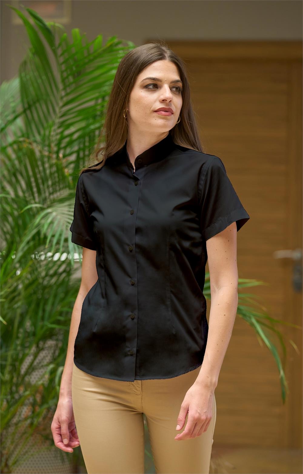 -Blusa señora -Cuello tirilla -Manga corta -Pinzas en espalda y delantero -Botón en puño