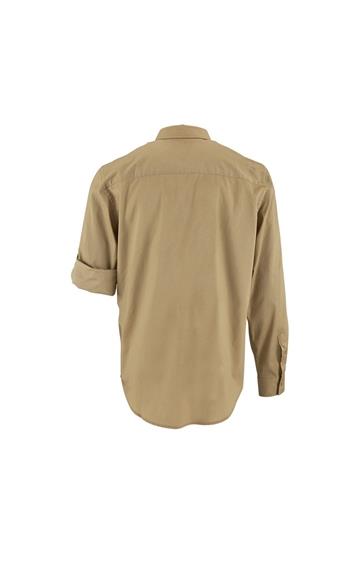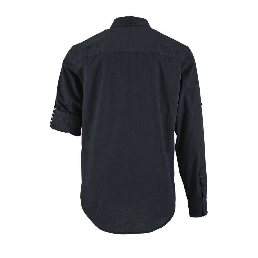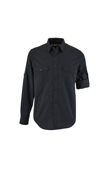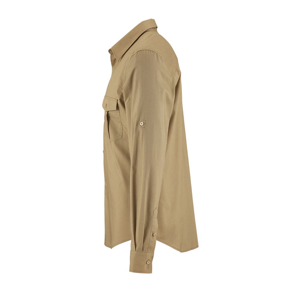 Corte recto - Mangas largas - Puños rectos con 1 botón - Abertura con tapeta en punta y botón - Tapeta de 7 botones - Tapeta para ajustar la longitud de las mangas - 2 bolsillos de pecho con solapa y botón